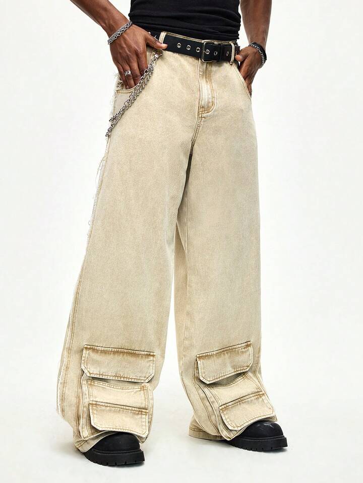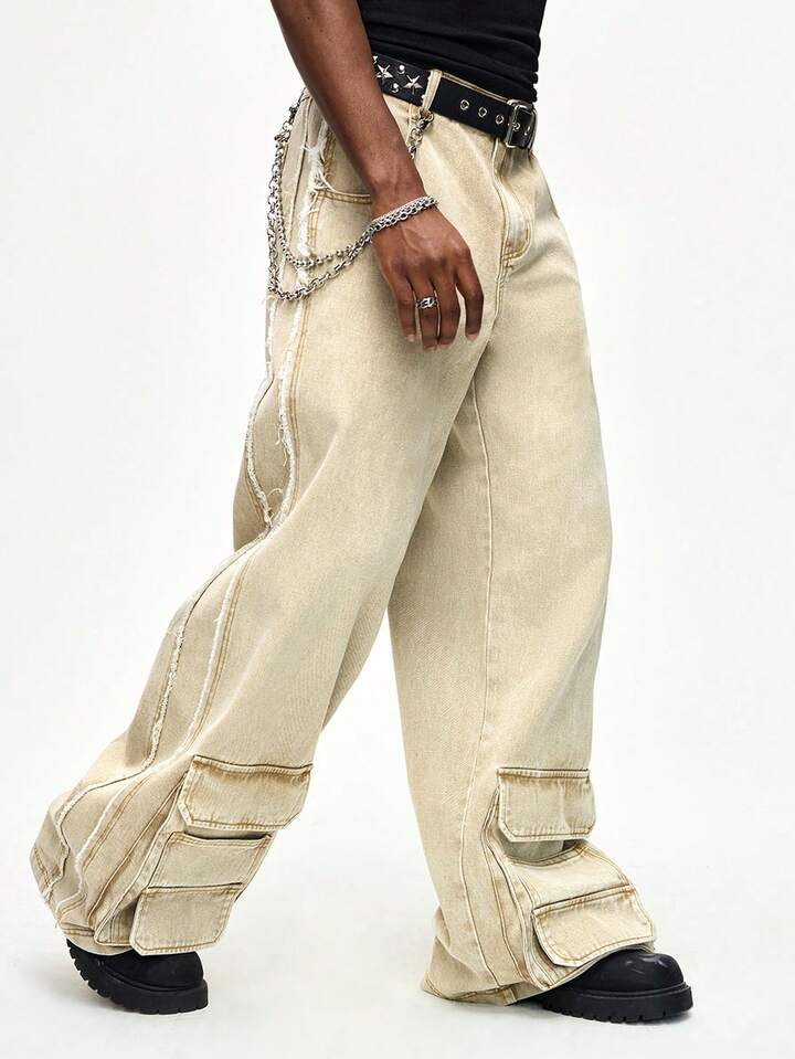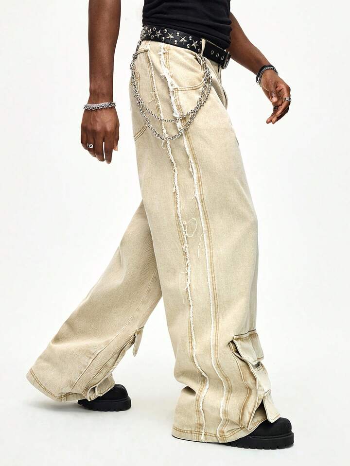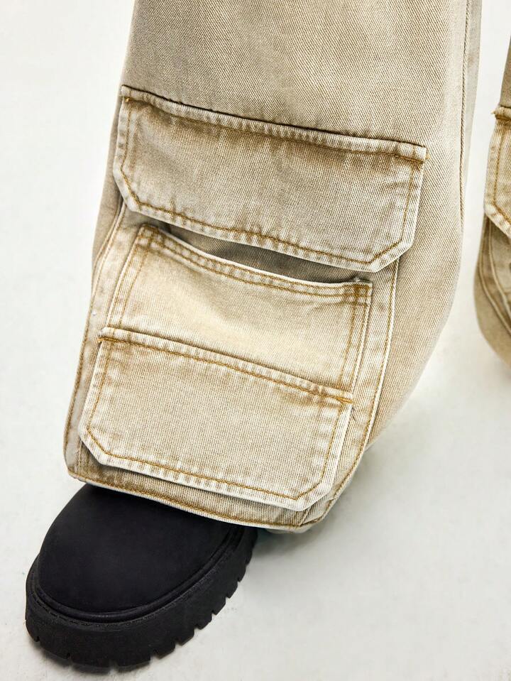 Street Life Jeans a gamba dritta con effetto vissuto, vestibilità morbida, color cammello, con passanti per cintura