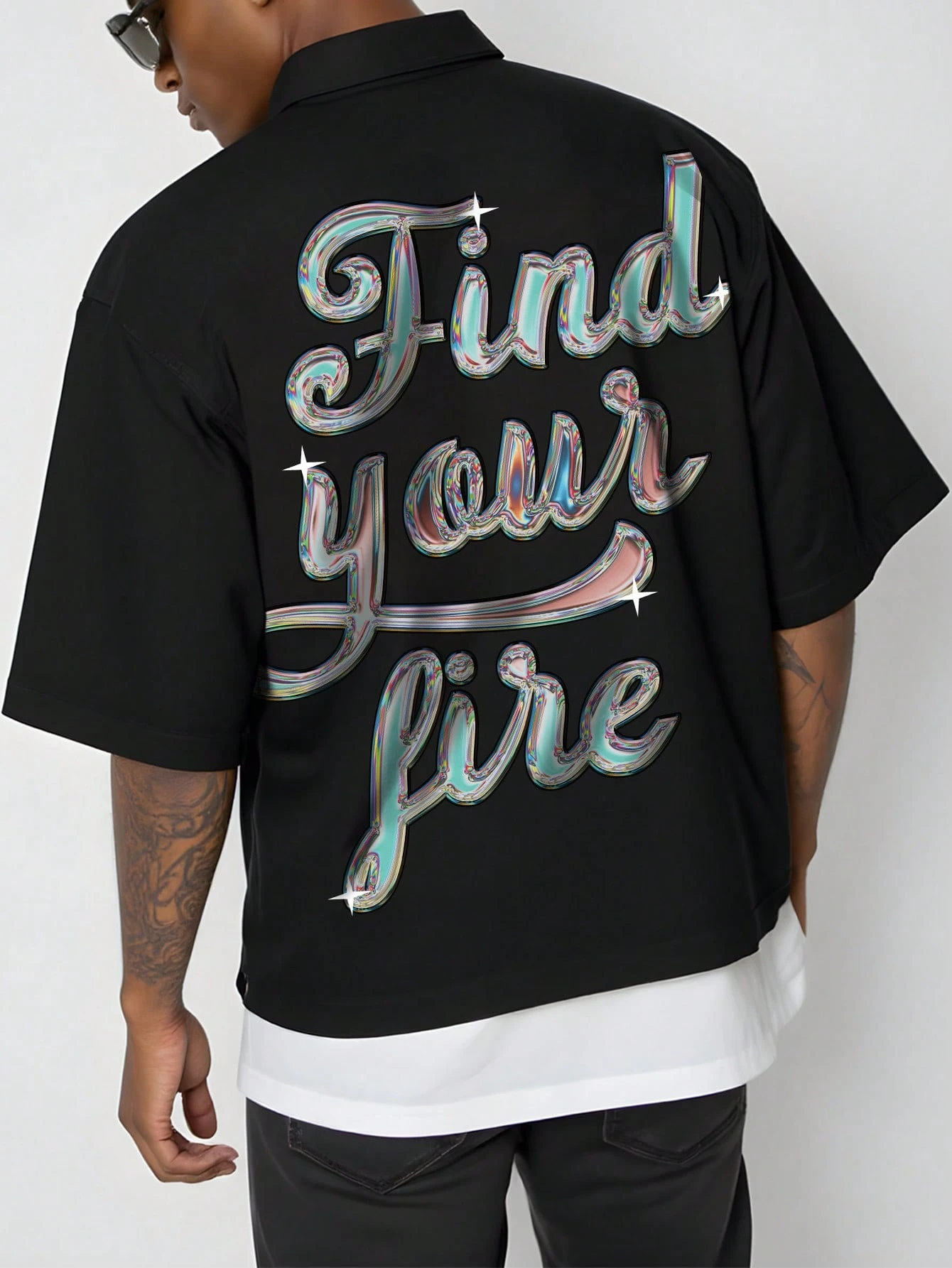 Street Life Camicia estiva casual elegante da uomo con chiusura lampo, di colore nero, dall'estetica moderna e stilosa, combinando elementi e un'atmosfera artistica
