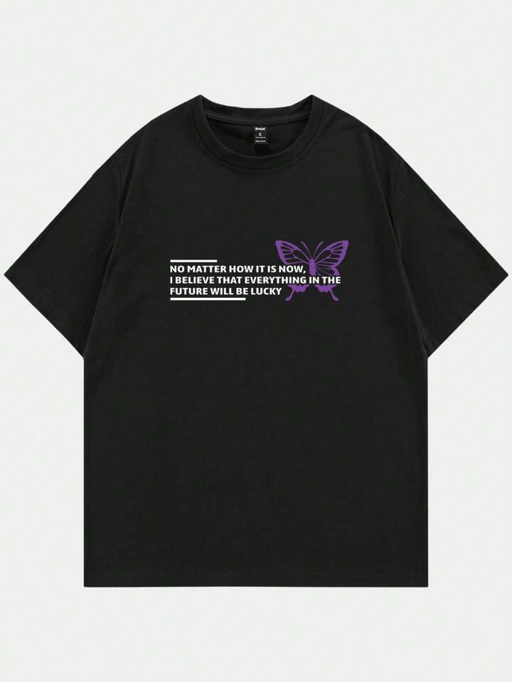 Street Life Ragazzi Maglietta cotone con farfalle e slogan