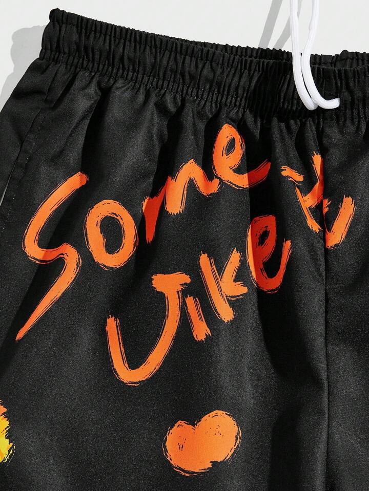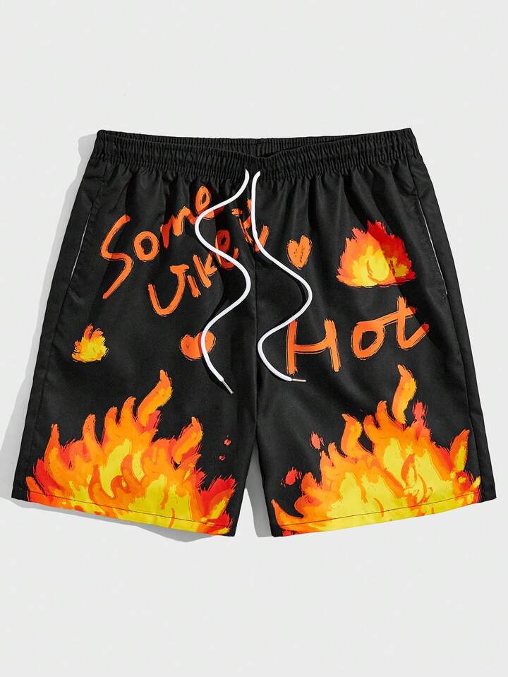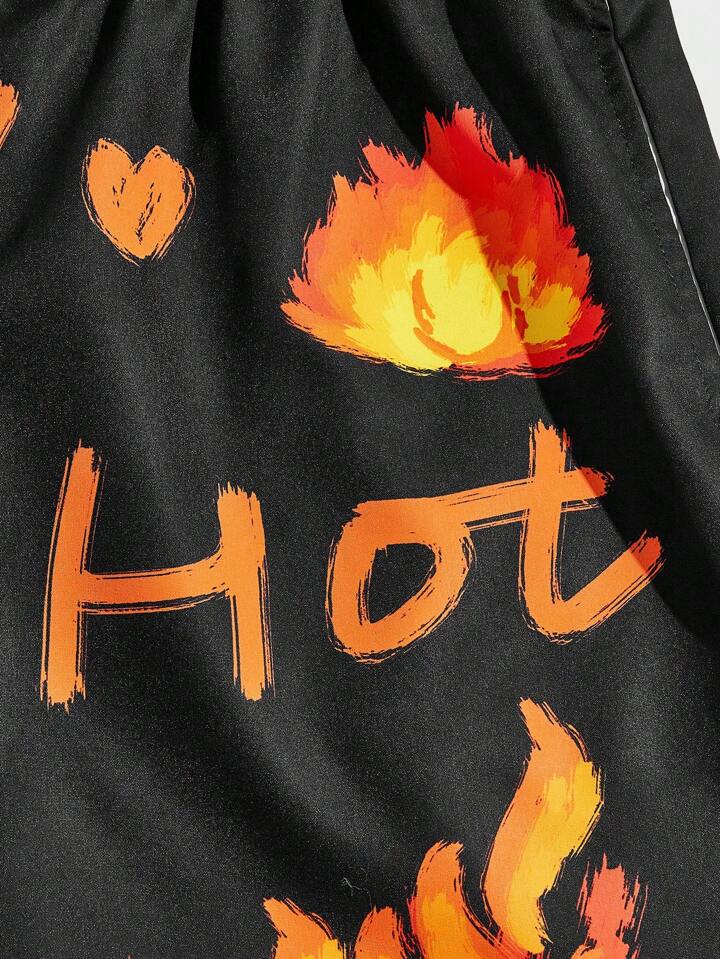 Street Life Ragazzi Shorts con grafica fuoco e lettere con coulisse a vita