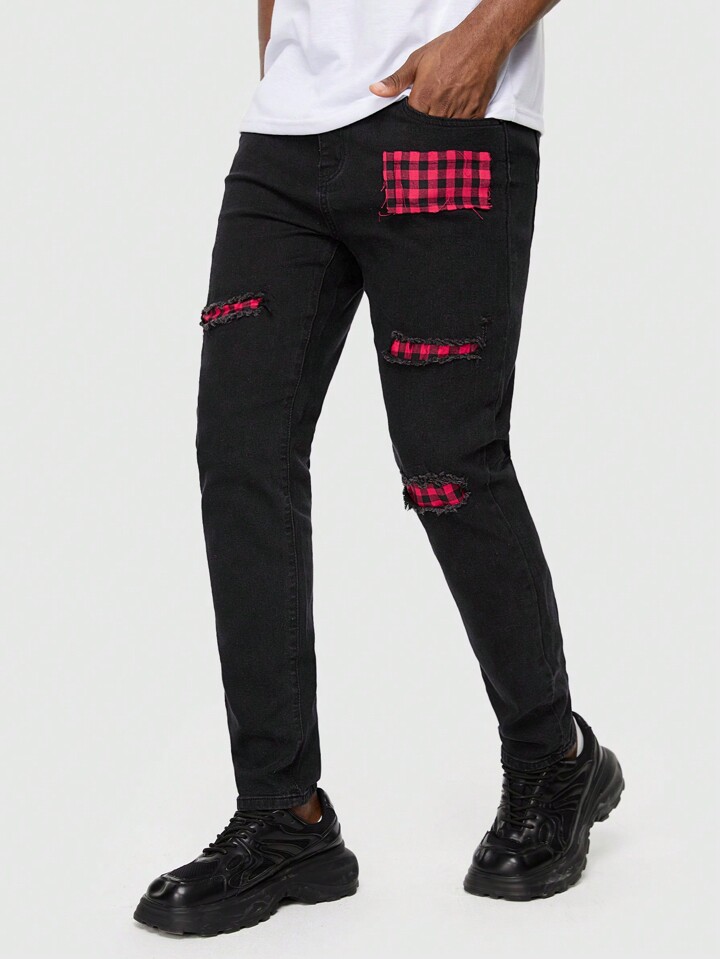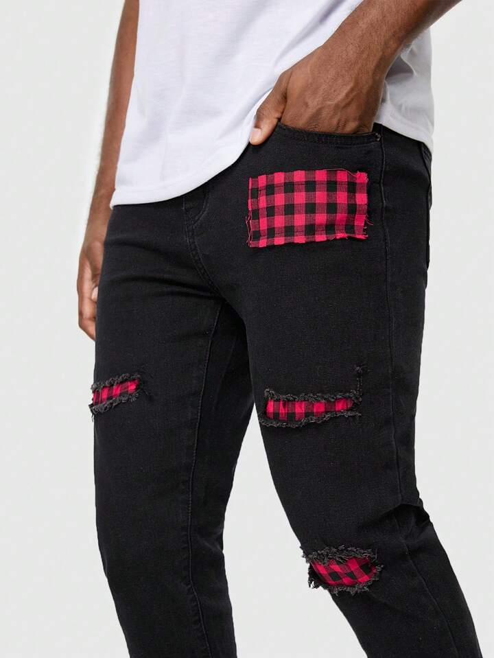 Street Life Ragazzi Jeans a quadri con strappati sfrangiato tasca inclinata