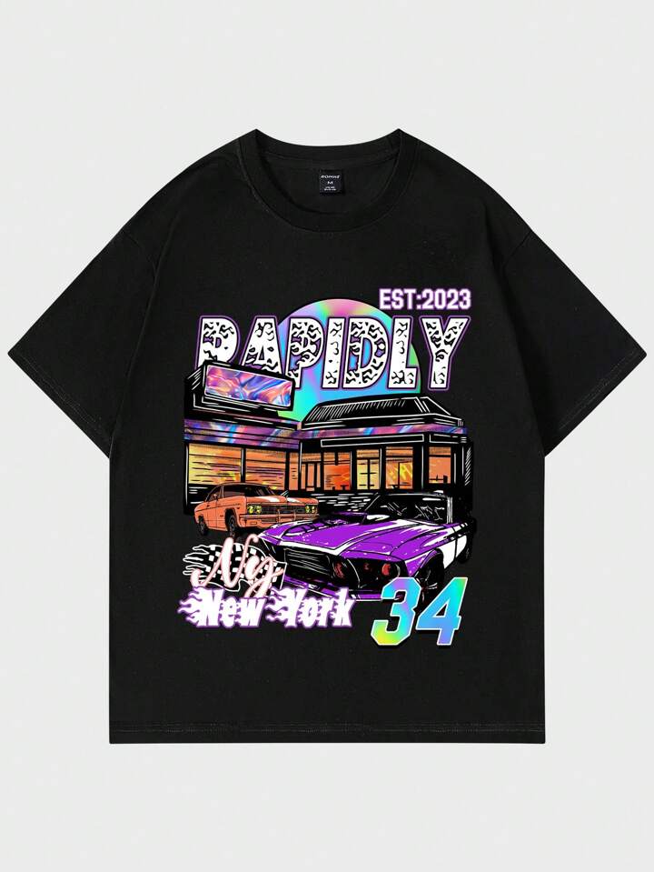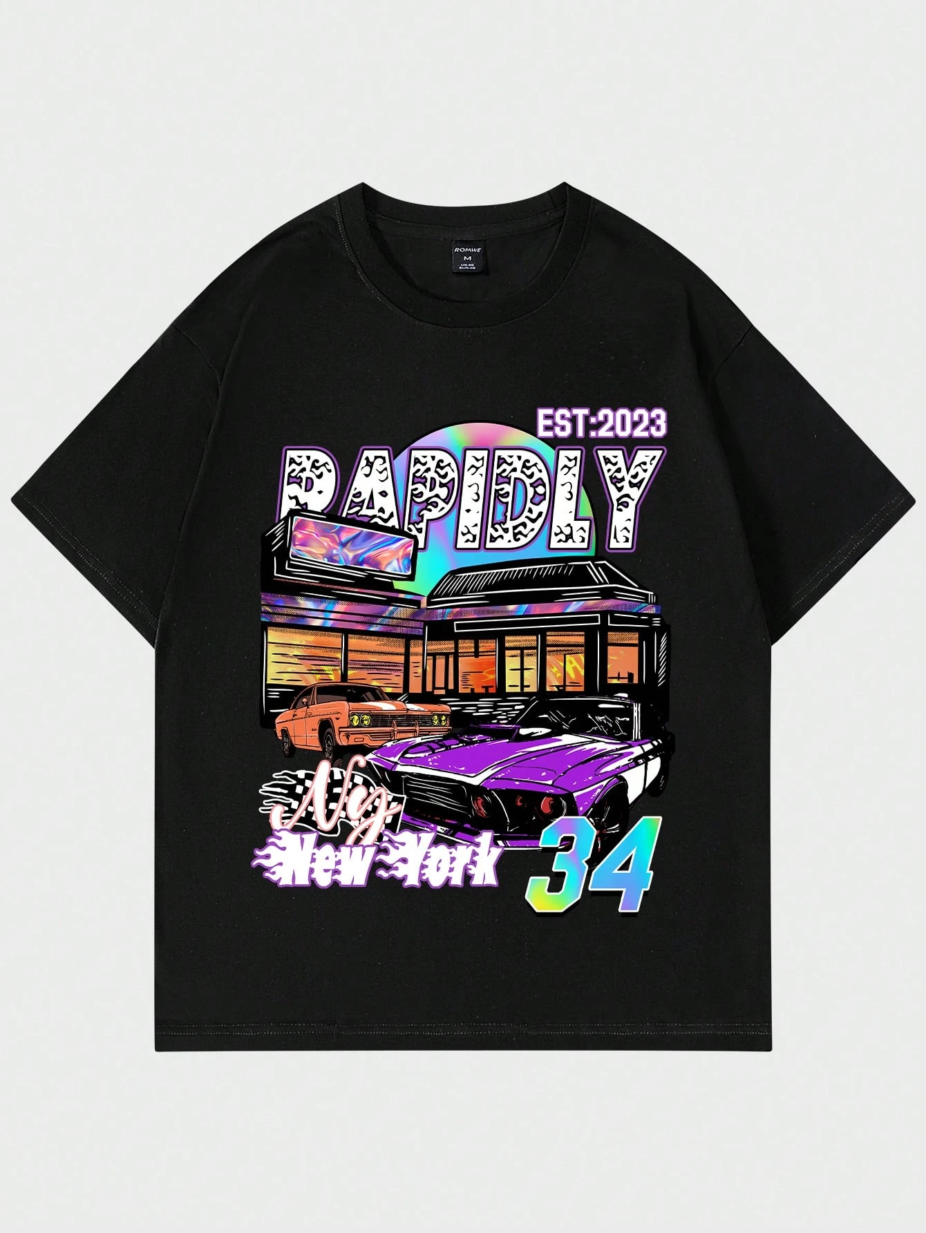 Street Life Ragazzi Maglietta con stampa auto e lettera