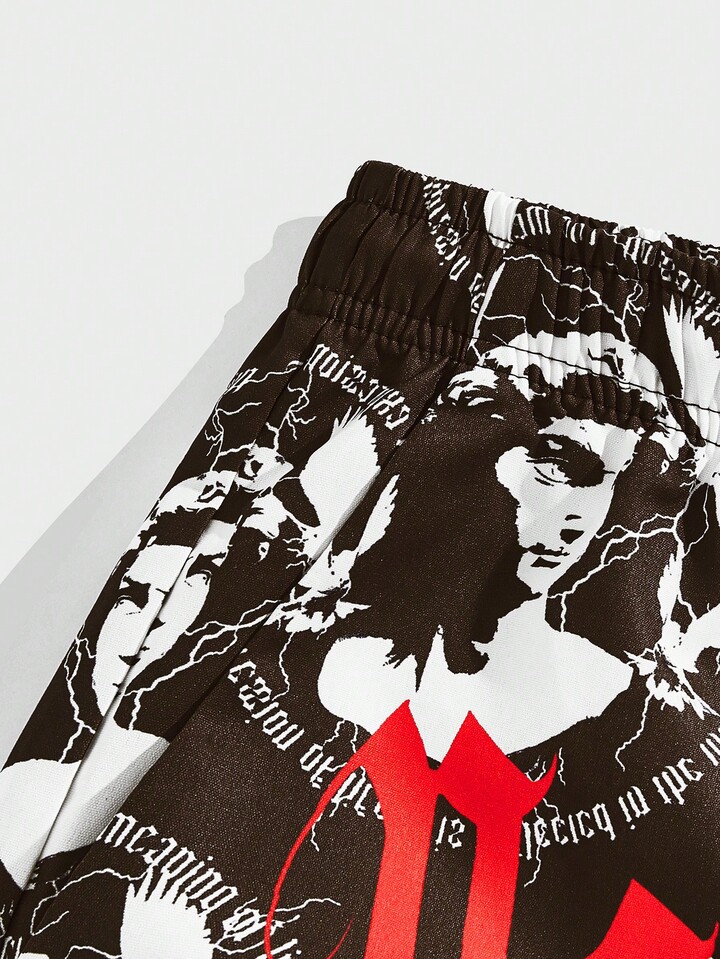 Street Life Ragazzi Shorts con grafica ritratto e lettera con coulisse a vita