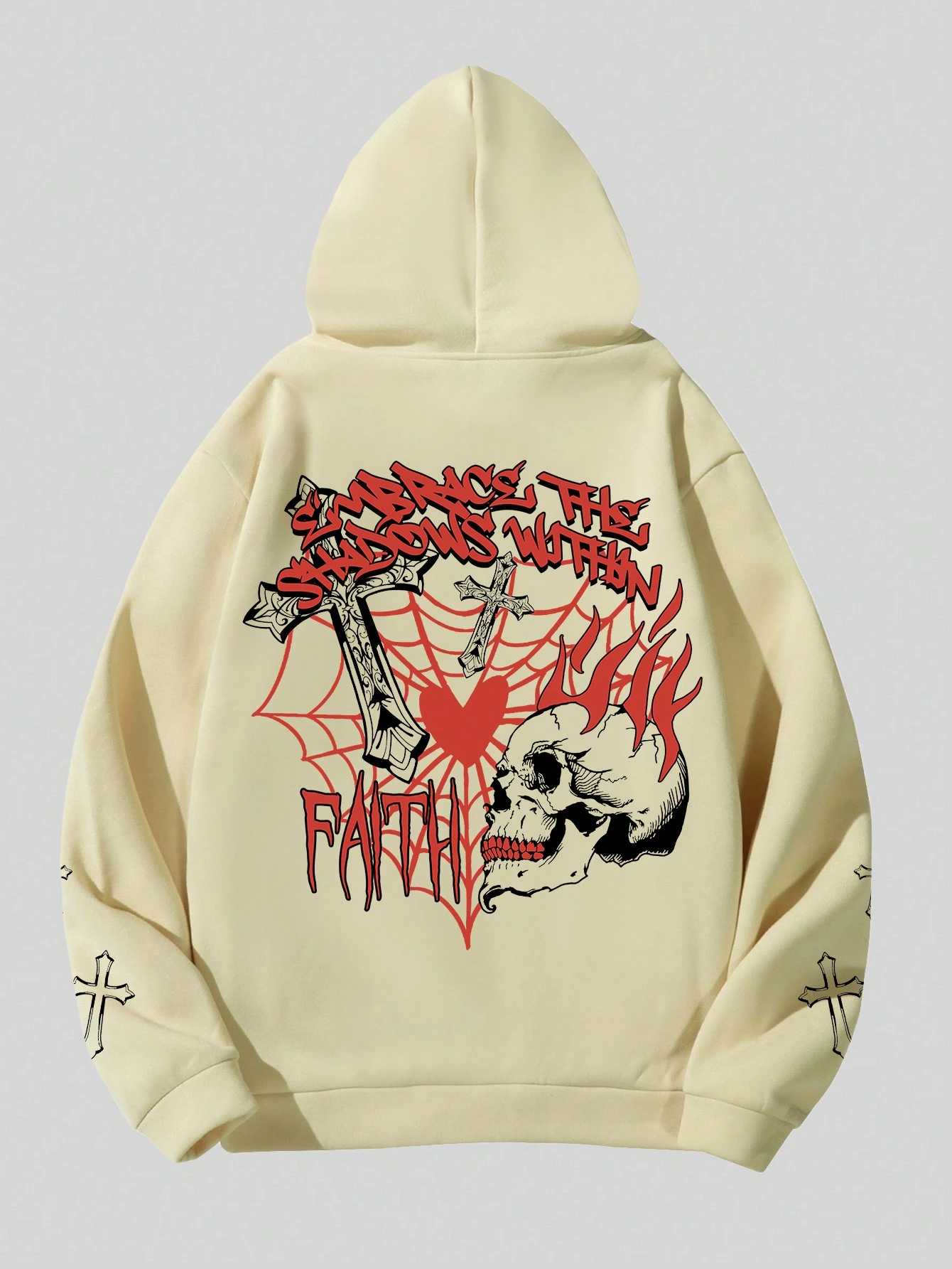 Street Life Ragazzi Felpa con cappuccio cranio e lettera con coulisse foderato termico