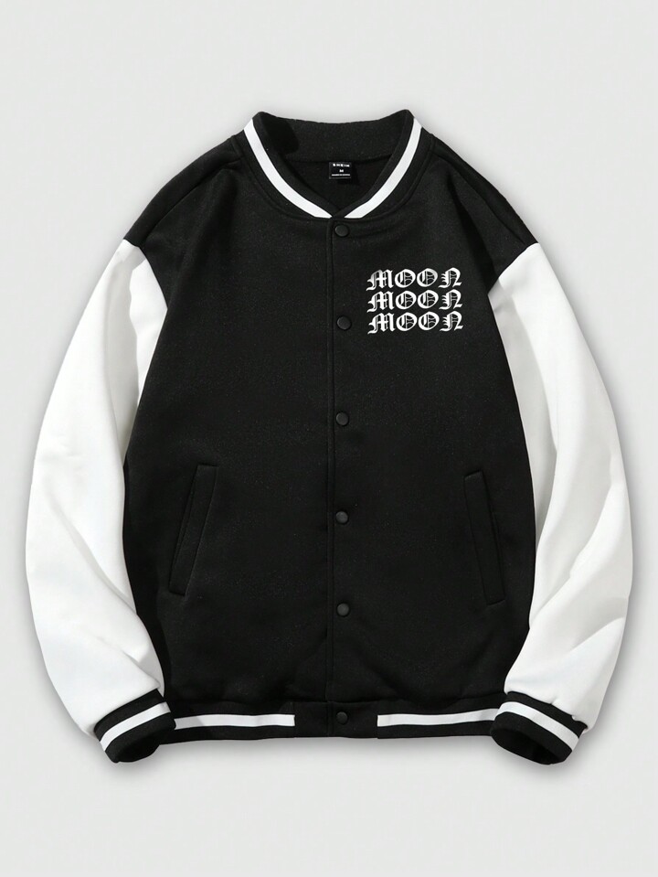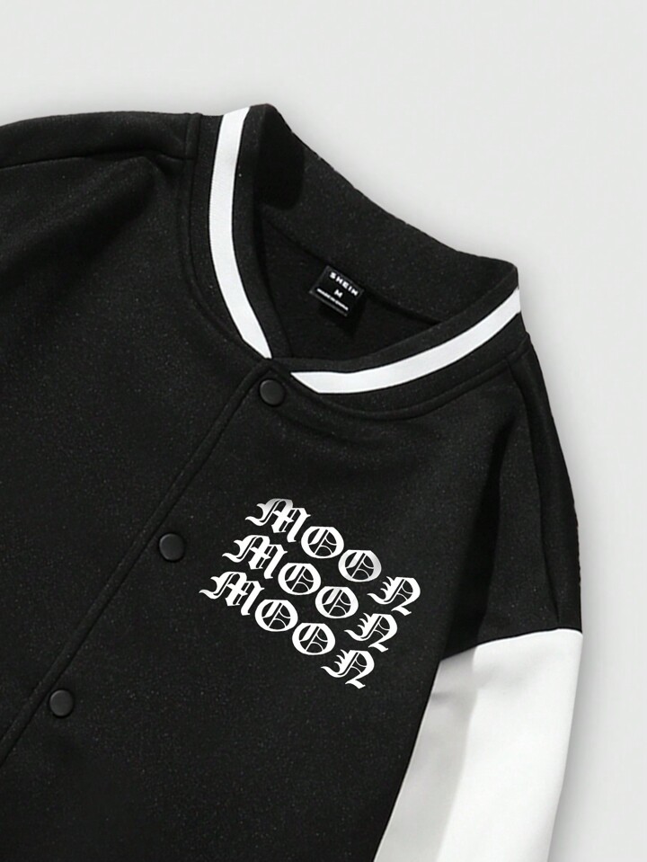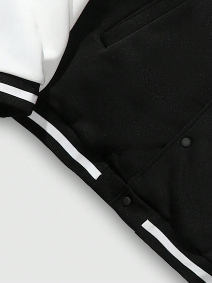 Street Life Ragazzi Giacca varsity con grafica slogan finitura a righe spalle cadenti