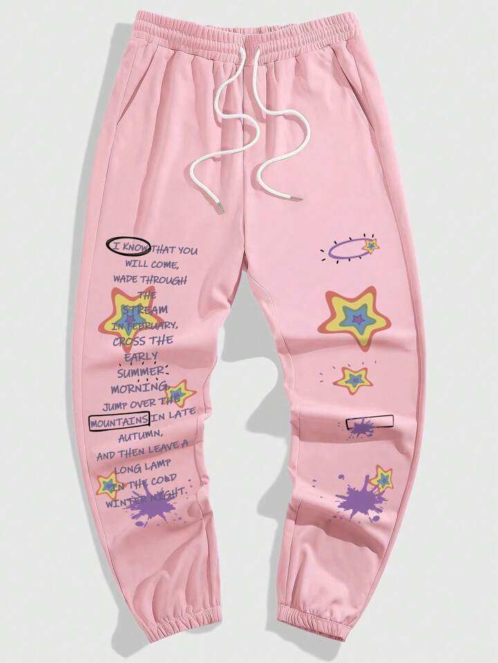 Street Life Ragazzi Pantaloni sportivi con grafica stella e slogan con coulisse a vita