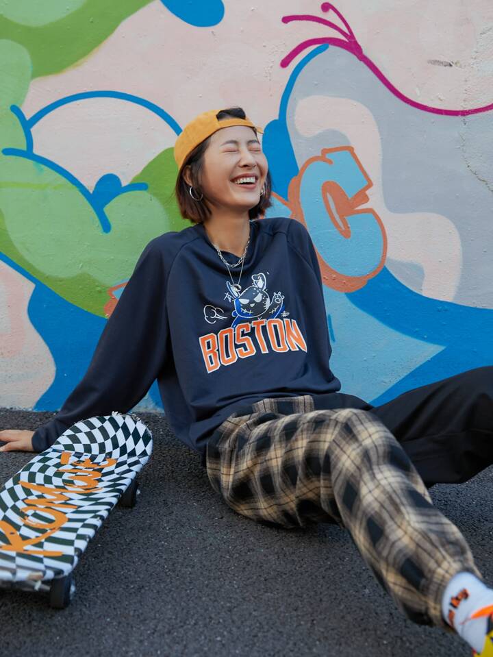 Street Life Felpa con lettere con fumetto grafici