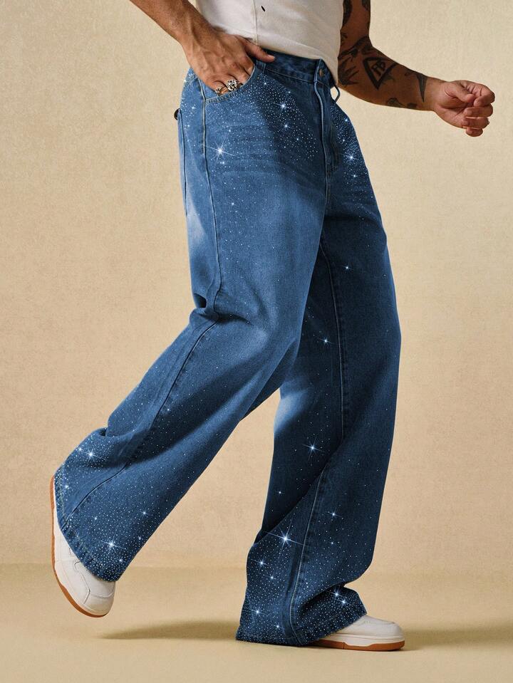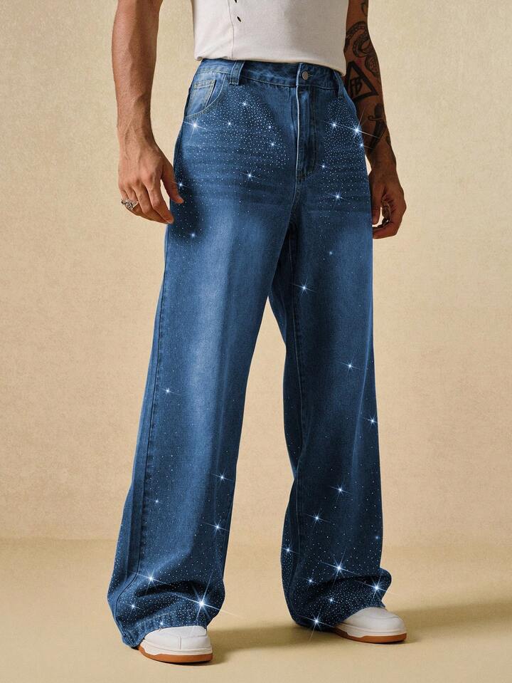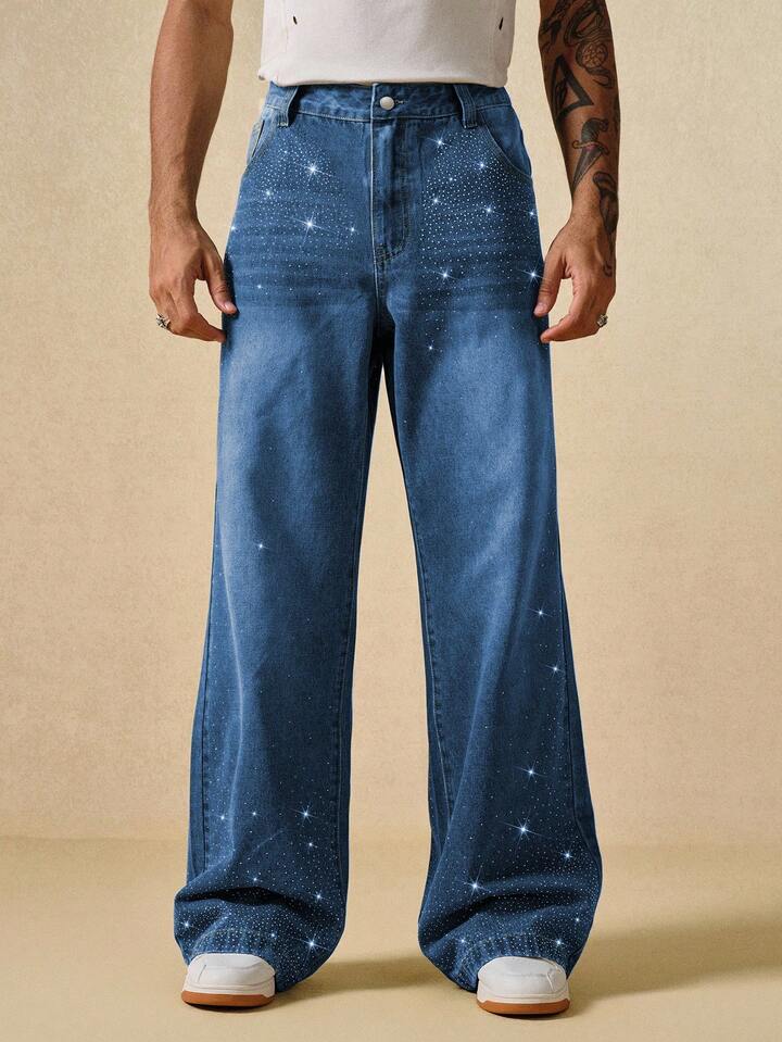 Street Life Jeans casual comodi e larghi con tasche con strass