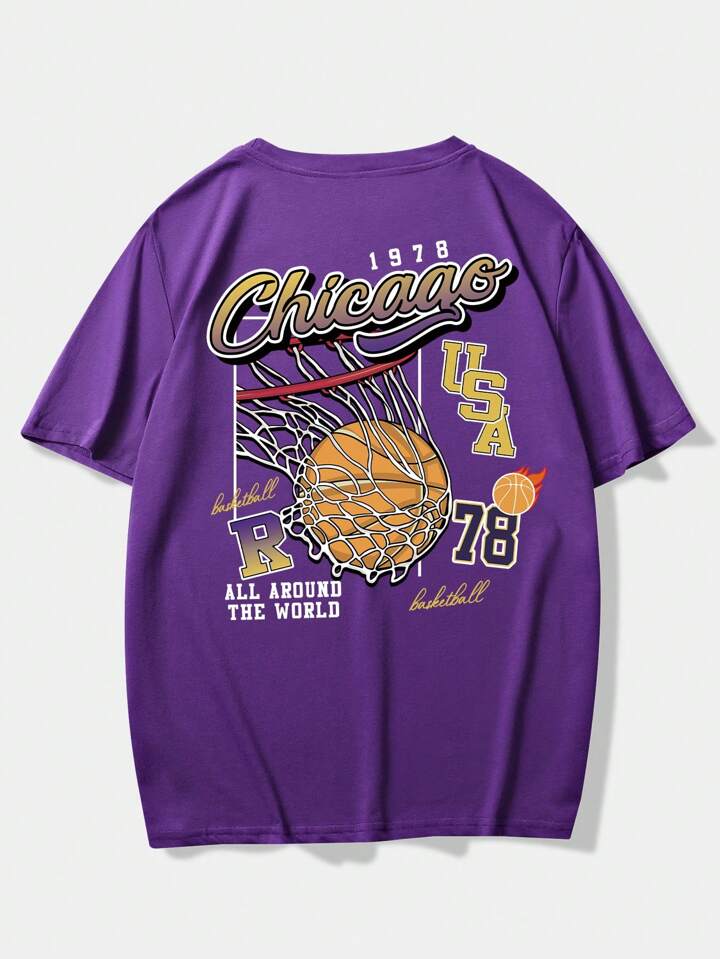 Street Life T-shirt da uomo con grafica di basket e lettera, per la scuola