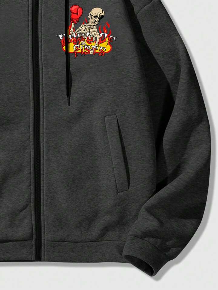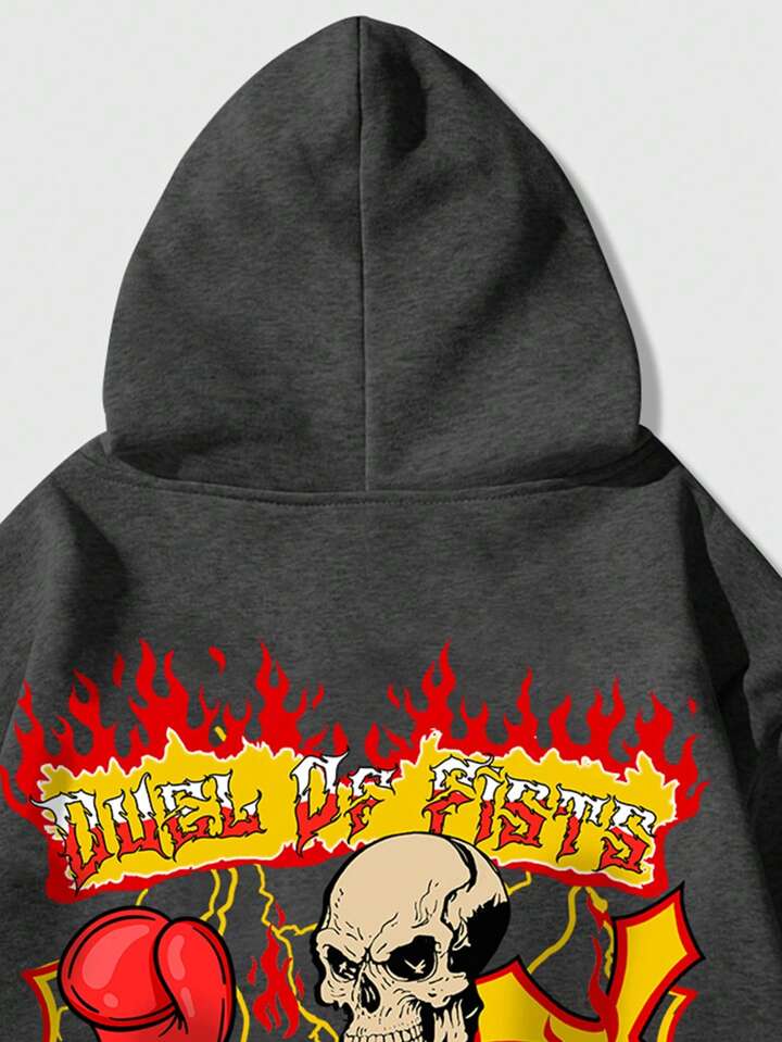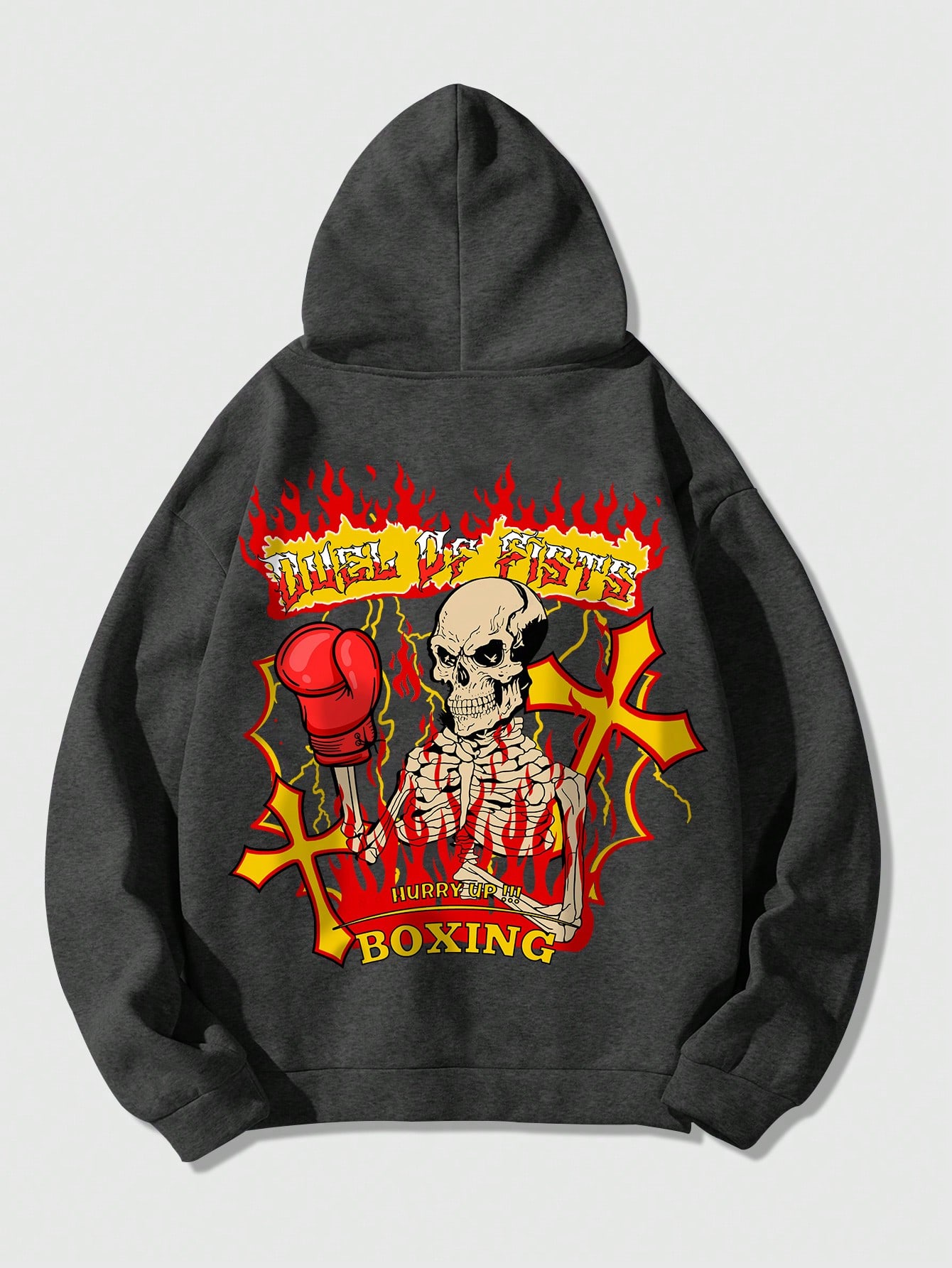 Street Life Felpa Con Cappuccio Stampata Con Teschio Di Boxe Da Uomo
