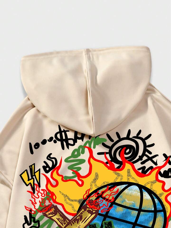 Street Life Uomo Felpa Con Cappuccio Con Tasca A Marsupio E Cordoncino Stile Cartone Animato