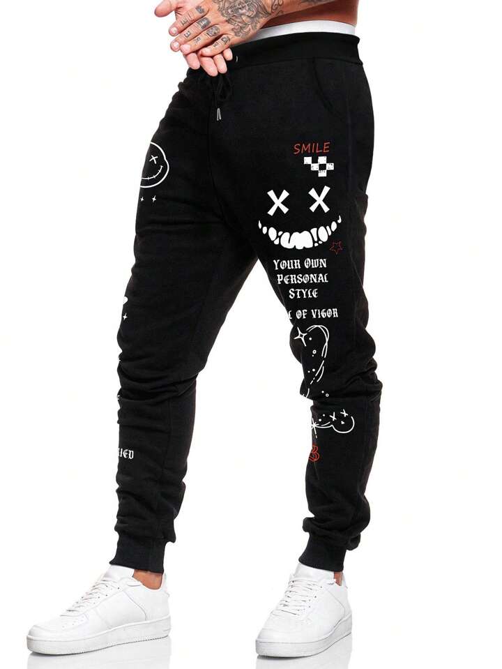 Street Life Pantaloni della tuta con coulisse in vita con grafica di cartoni animati e slogan, adatti per la scuola e i rave
