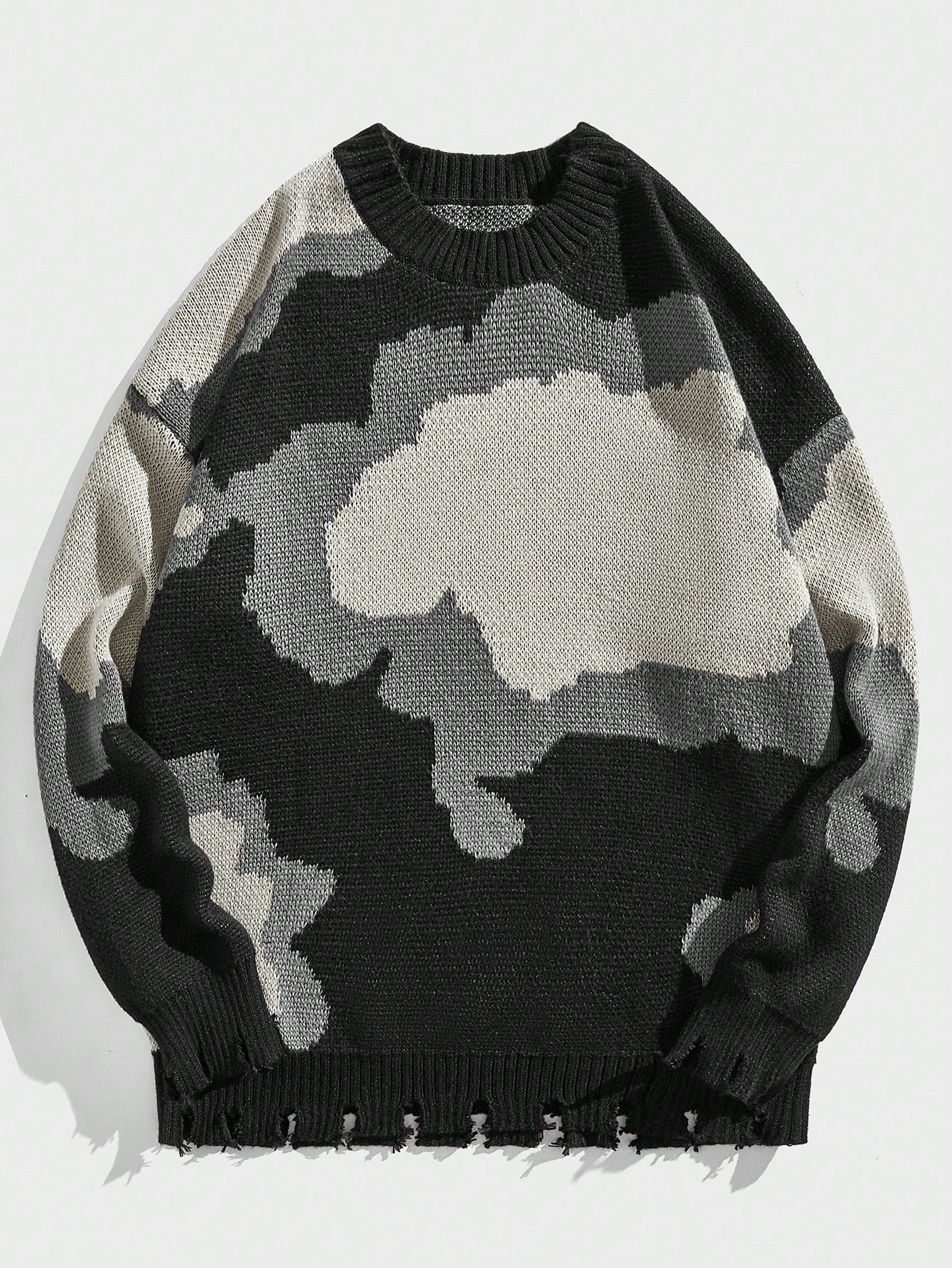 Street Life Maglione Da Uomo Con Motivo Nuvola Distrutto