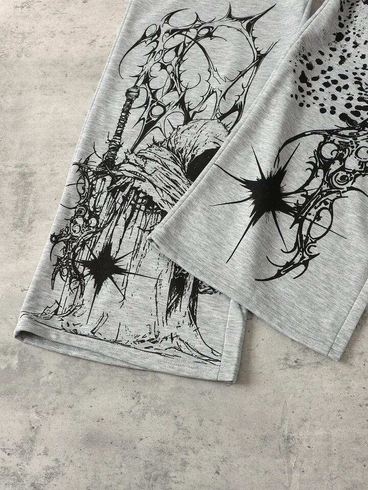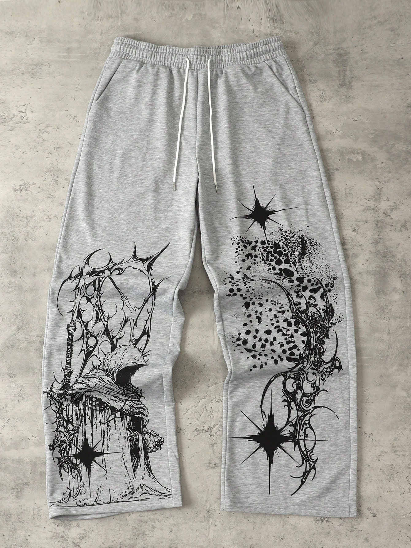 Street Life Pantaloni della tuta casual con vita elastica e coulisse, stampa grigia versatile, stile retrò da strada, autunnale
