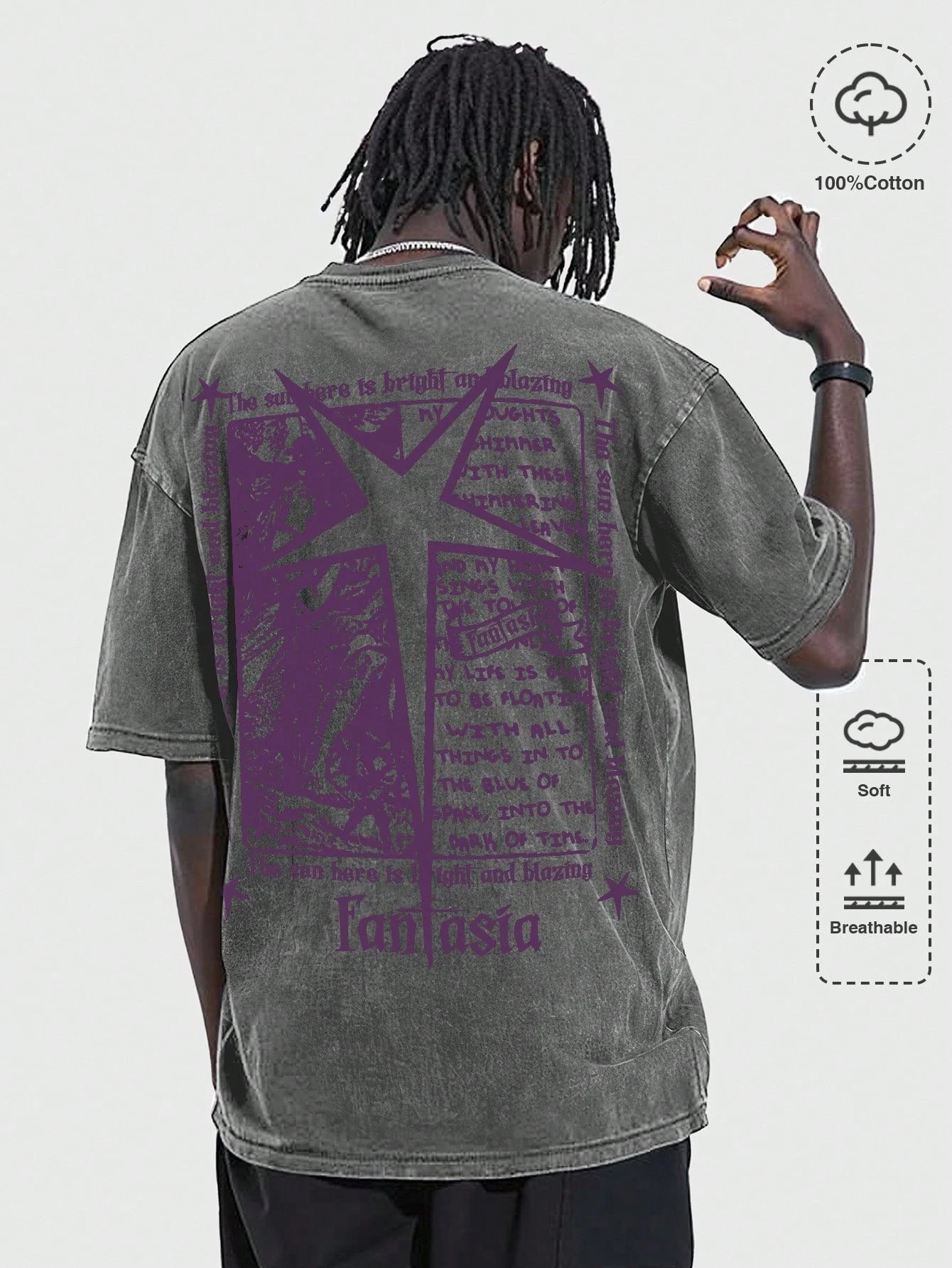 Street Life Maglietta a maniche corte larga e alla moda con stampa, stile anni 2000 per uomo