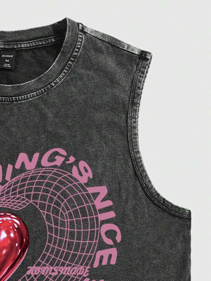 Street Life Set di canotta e pantaloncini casual stampati a cuore per uomo, ideali per la primavera/estate