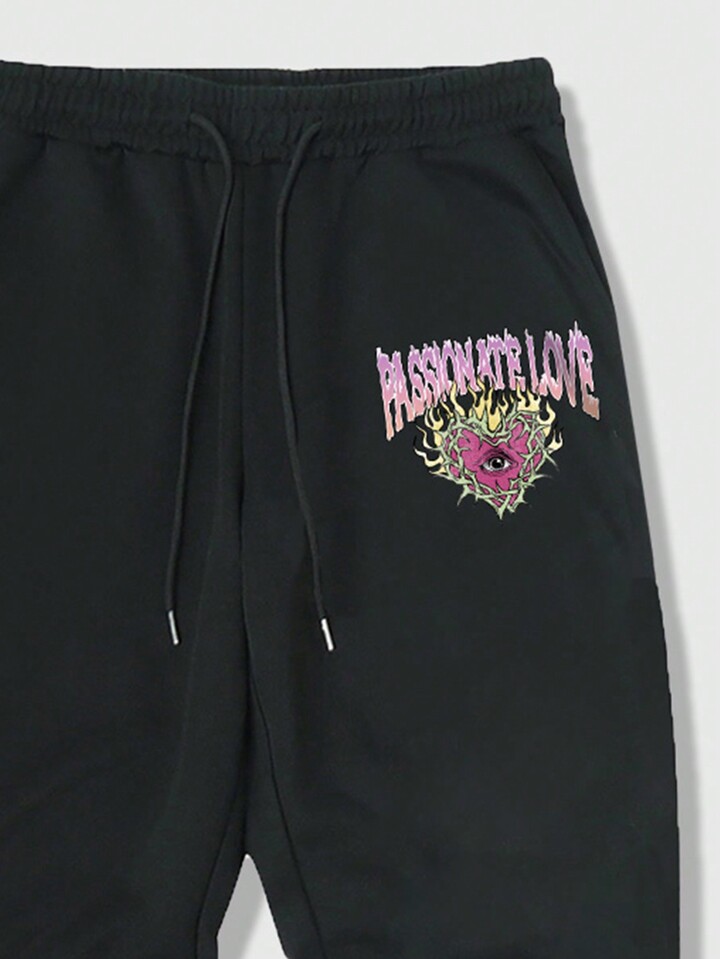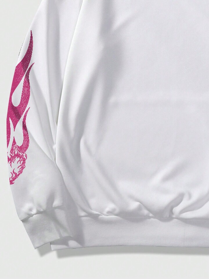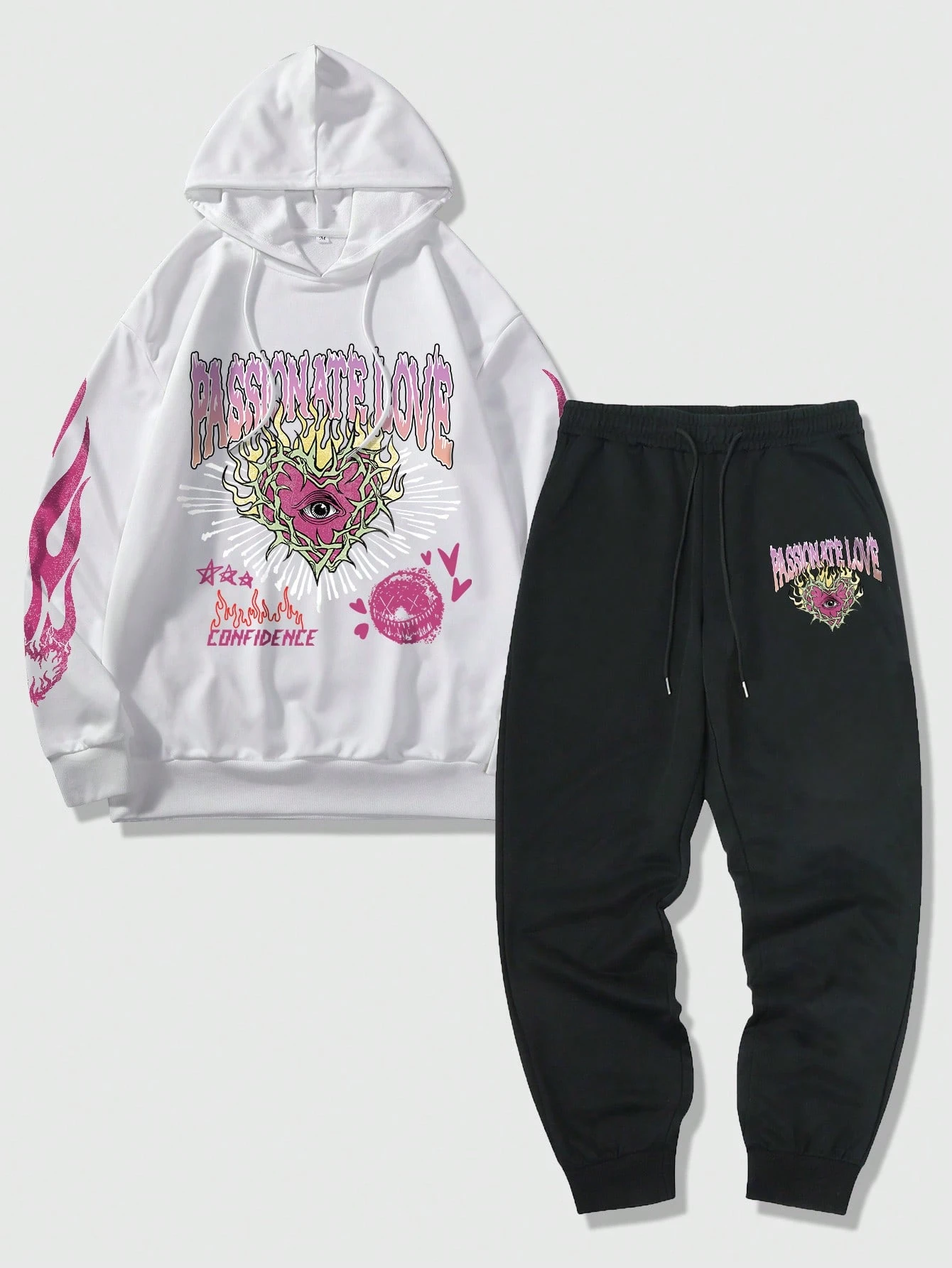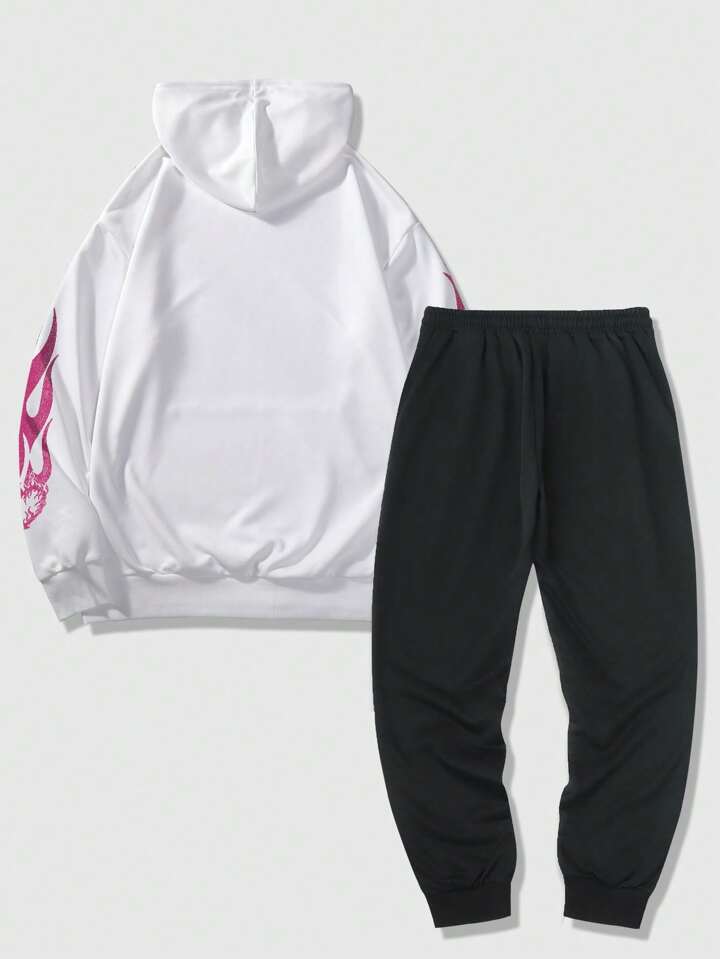 Street Life Uomo Felpa con cappuccio lettere e con stampa fiamma con coulisse & Pantaloni sportivi Set
