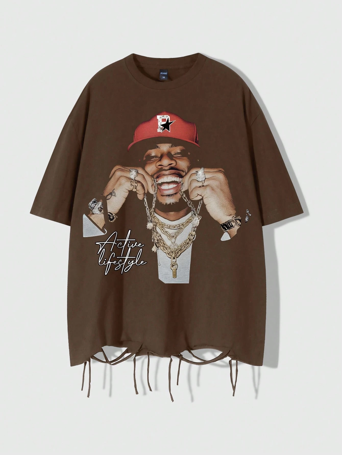 Street Life Maglietta casual larga da uomo con stampa di lettere e figure, con collo tondo e maniche corte, adatta per primavera ed estate