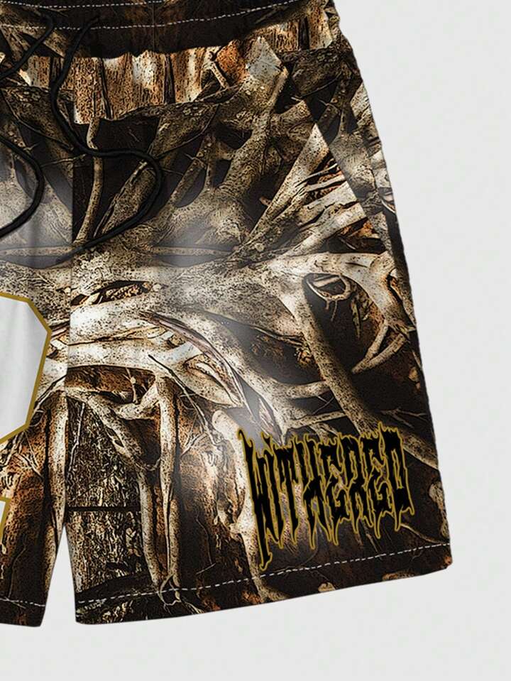 Street Life Uomo Pantaloncini con lettere grafiche e cintura con coulisse per l'estate