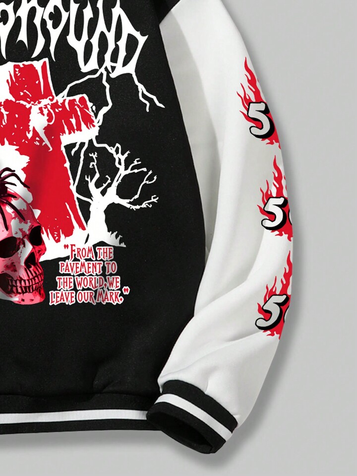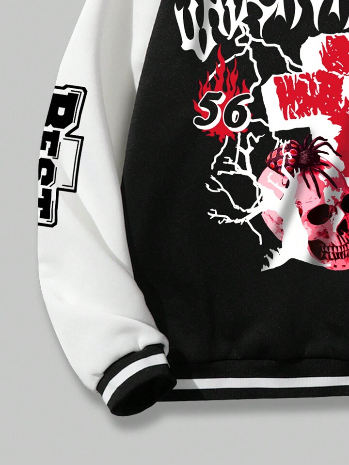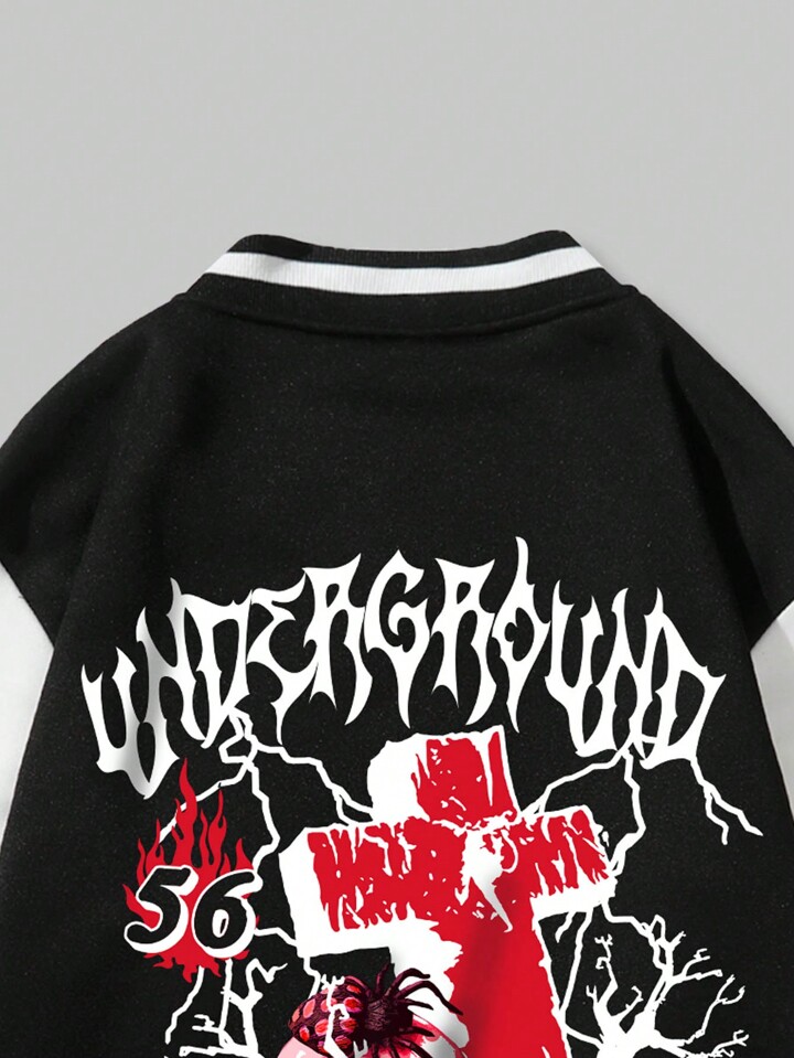 Street Life Uomo Giacca Varsity Con Spalle Scese E Lettere Grafiche Con Bordo A Righe