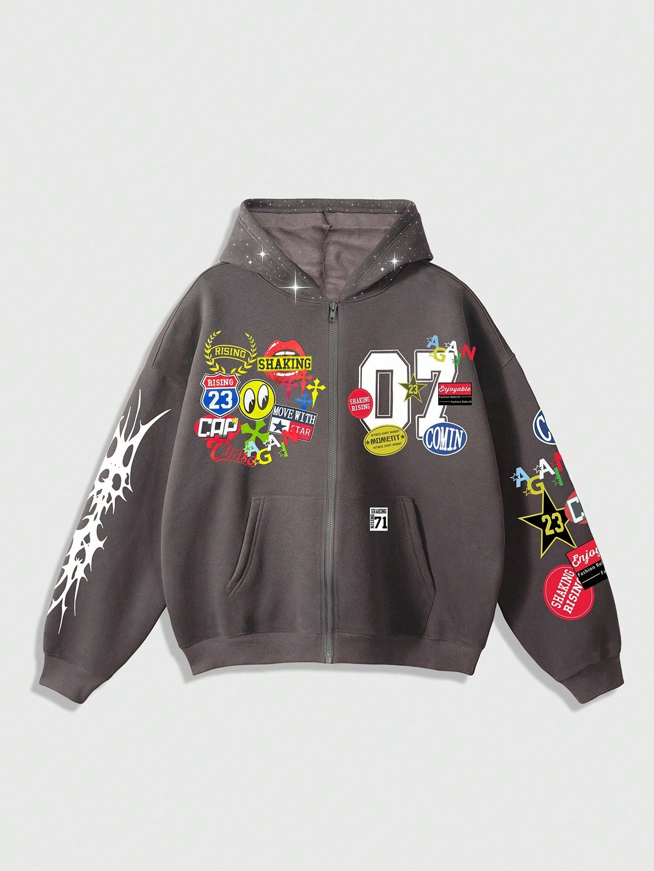 Street Life Felpa ampia e corta da uomo con decorazioni in paillettes, abbigliamento casual, autunno