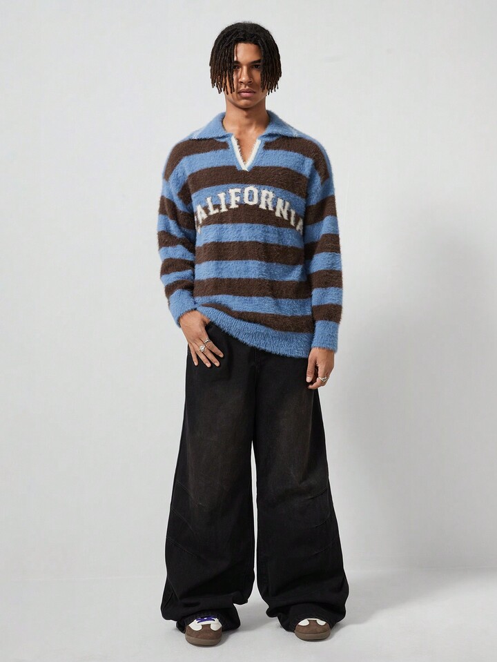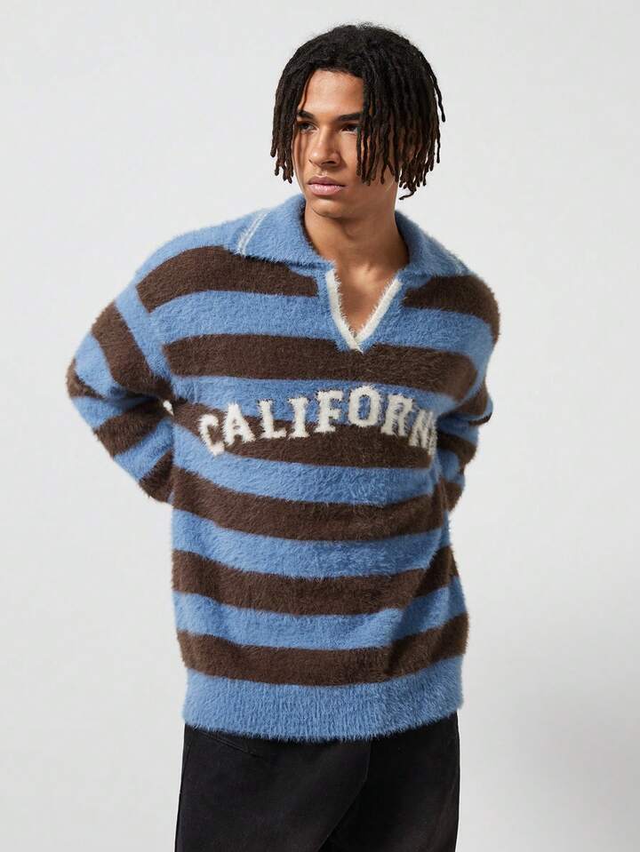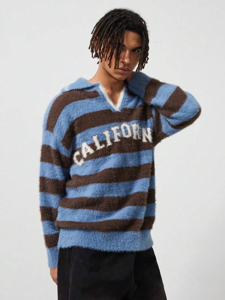 Street Life Camicia casual da uomo a righe con collo tipo polo