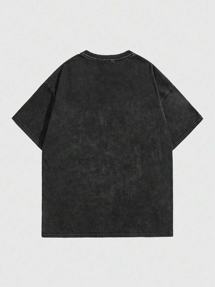 Street Life T-shirt a maniche corte da uomo con stampa di slogan e lavaggio acido, adatta per l'uso quotidiano in primavera e estate