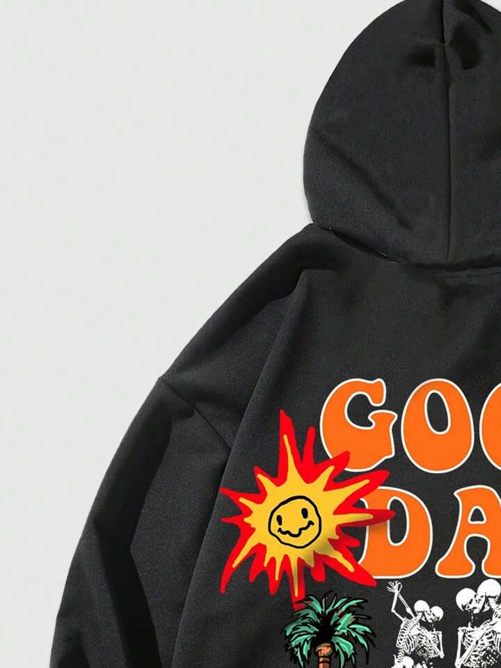 Street Life Felpa Con Cappuccio Termica Con Fodera Slogan Grafico Con Coulisse Per Uomo