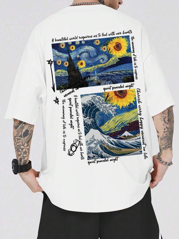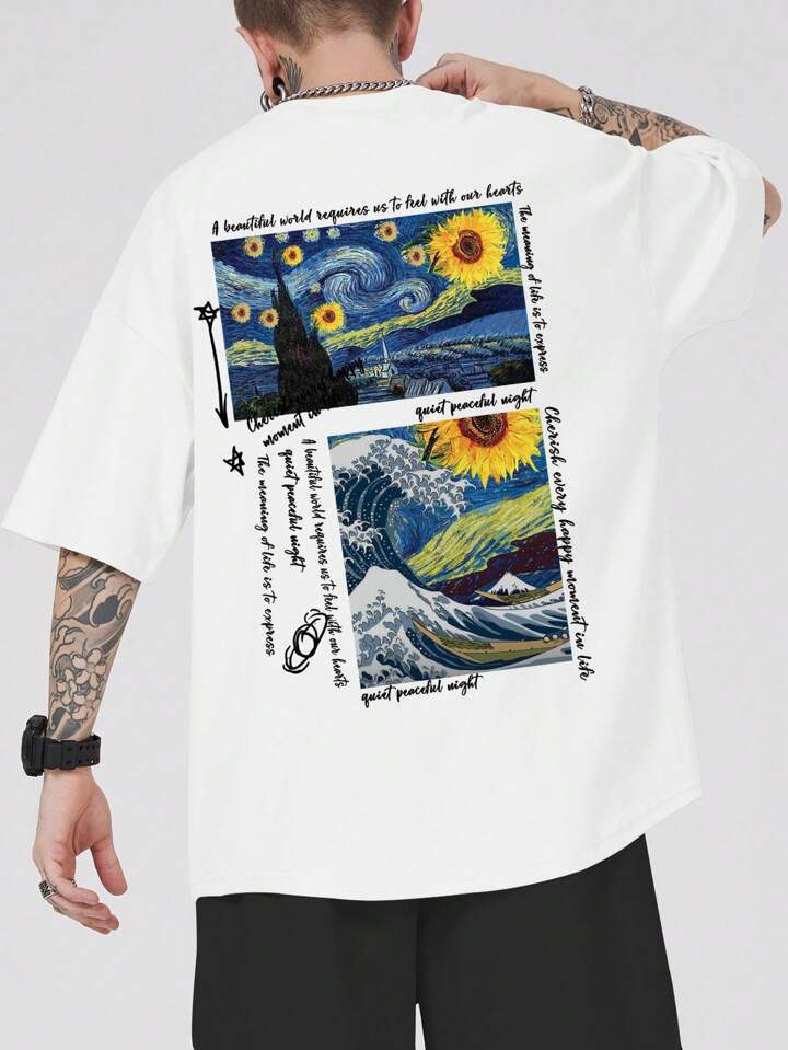 Street Life Maglietta Con Stampa Slogan E Girasoli Con Spalle Scese Per Uomo