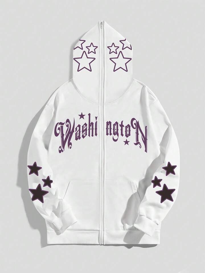 Street Life Uomo Felpa Con Cappuccio Termica Con Zip Grafica Lettera E Stella