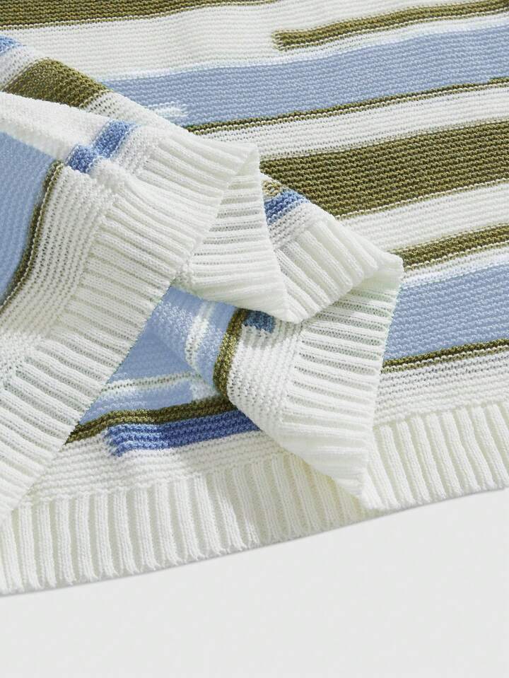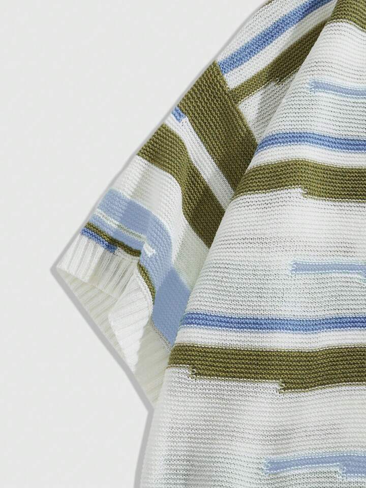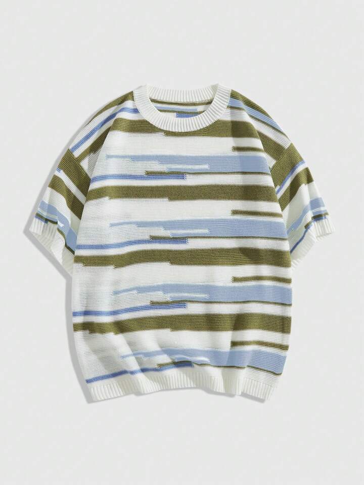 Street Life Maglione casual a girocollo a maniche corte con righe per uomo