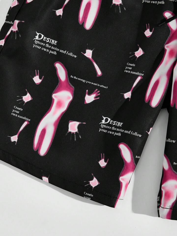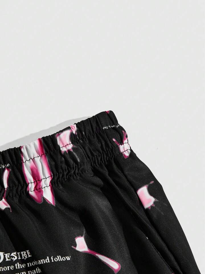 Street Life Pantaloncini Uomo Con Stampa Di Figura Astratta E Slogan
