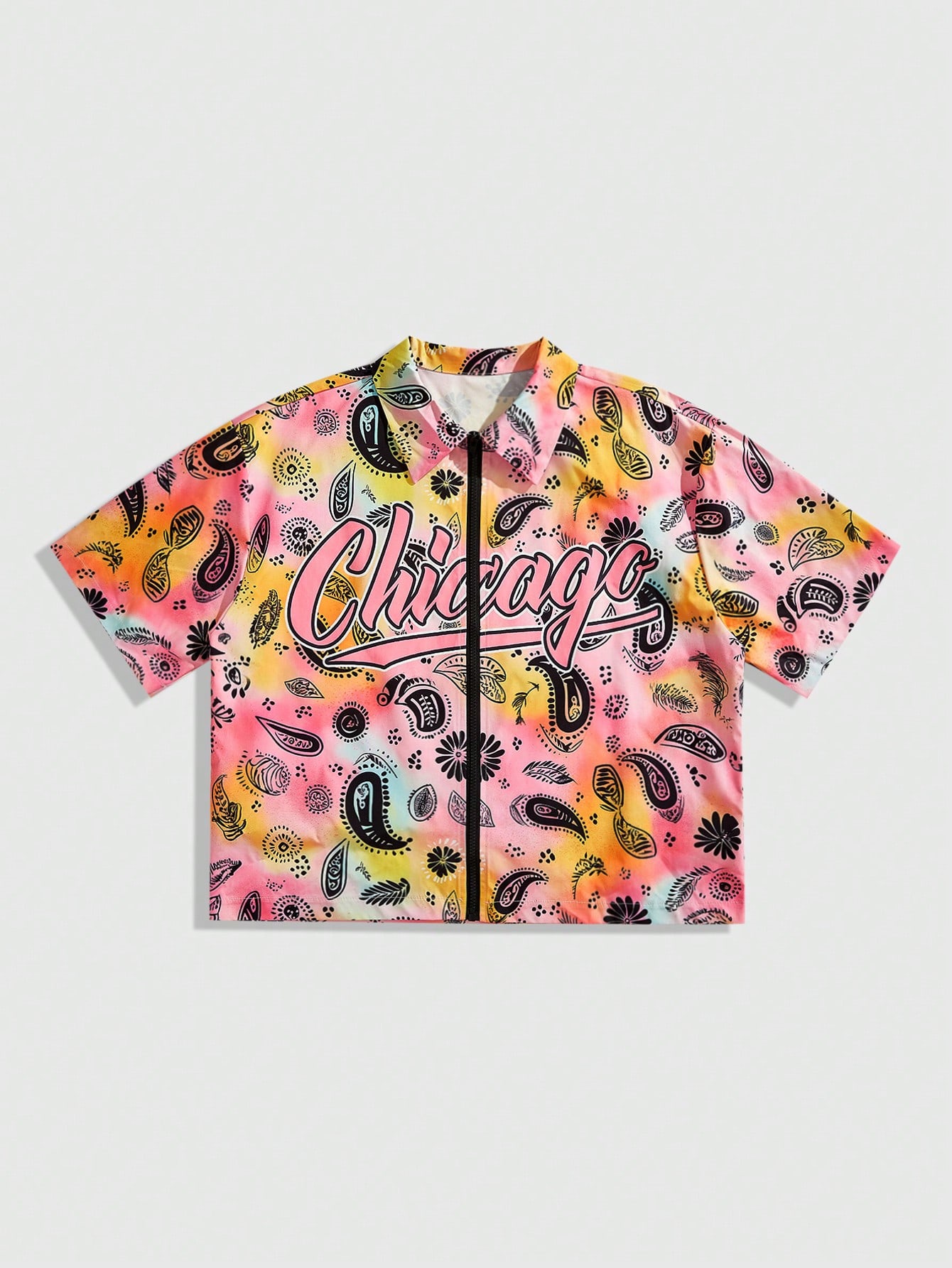 Street Life Camicia casual a maniche corte con bottoni e stampa all-over, vestibilità ampia, per uomo
