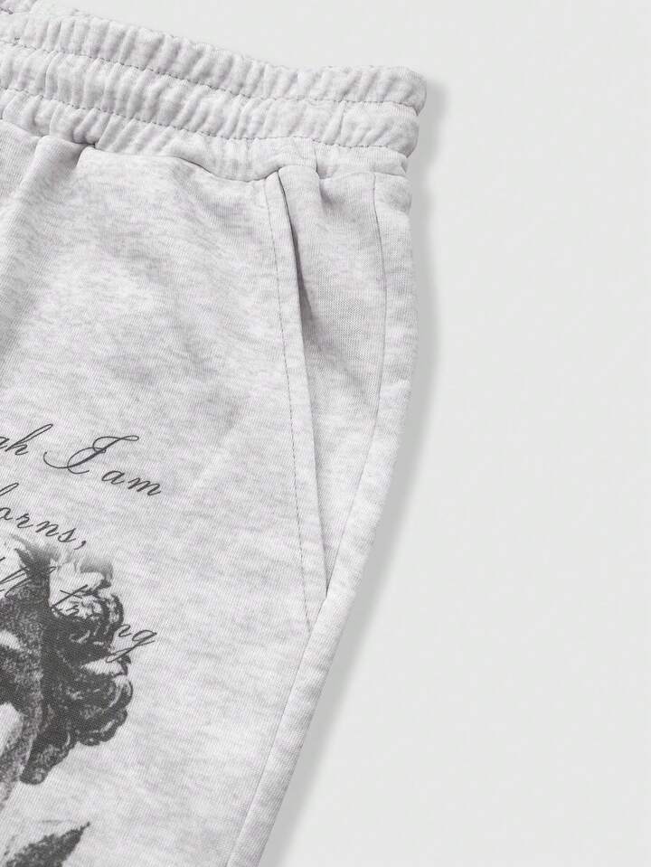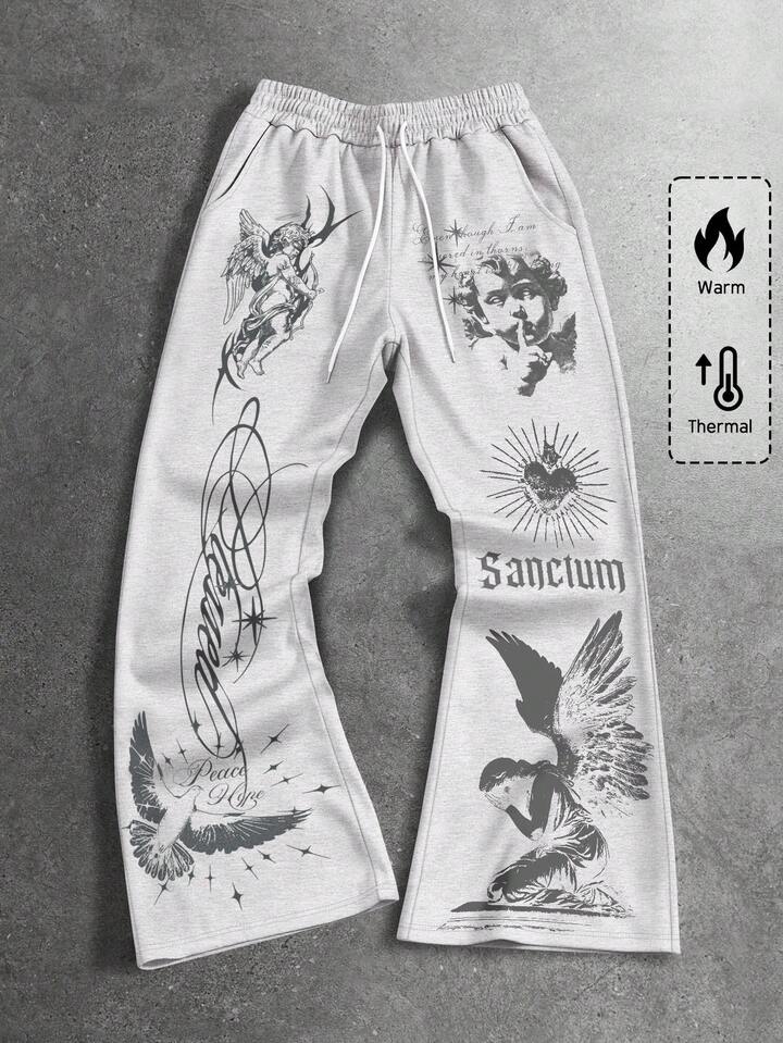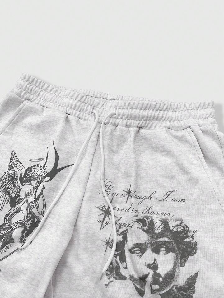 Street Life Pantaloni casual da uomo con stampa di angeli e lettere e vita con coulisse