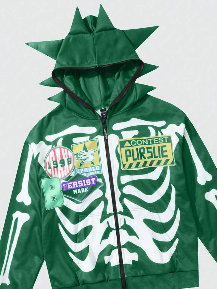 Street Life Felpa con cappuccio minimalista da uomo con cerniera frontale e stampa di antenne