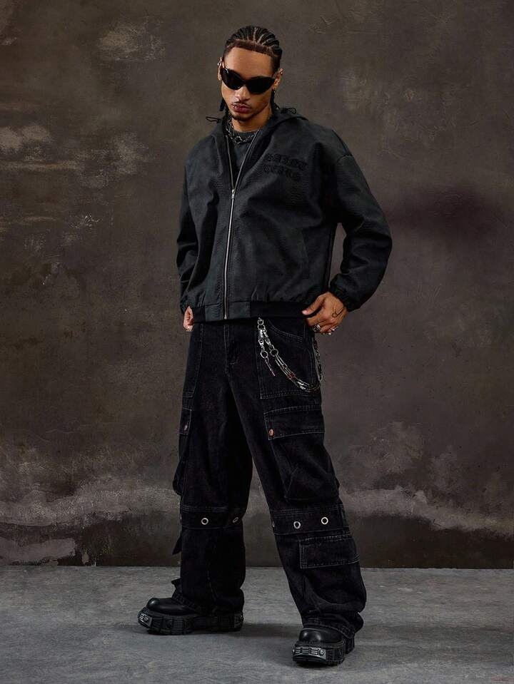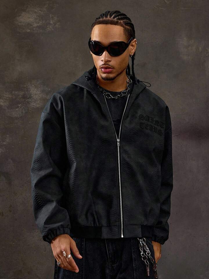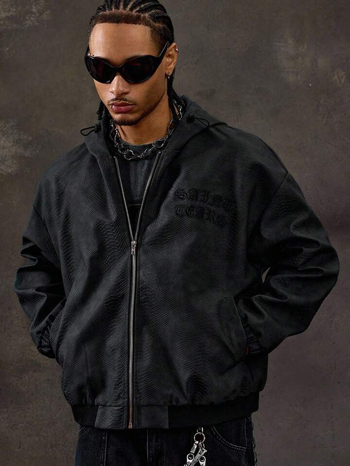 Street Life Giacca casual con cappuccio con chiusura lampo e ricamo a lettera, da uomo, per l'autunno