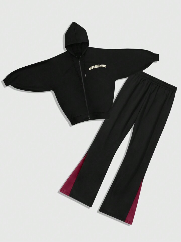 Street Life Felpa con cappuccio e pantaloni casual da uomo, con stampa a lettere e maniche a pipistrello, per l'autunno, adatto anche per Ognissanti
