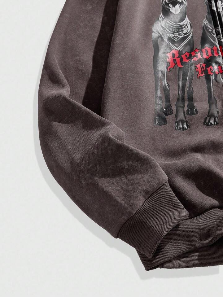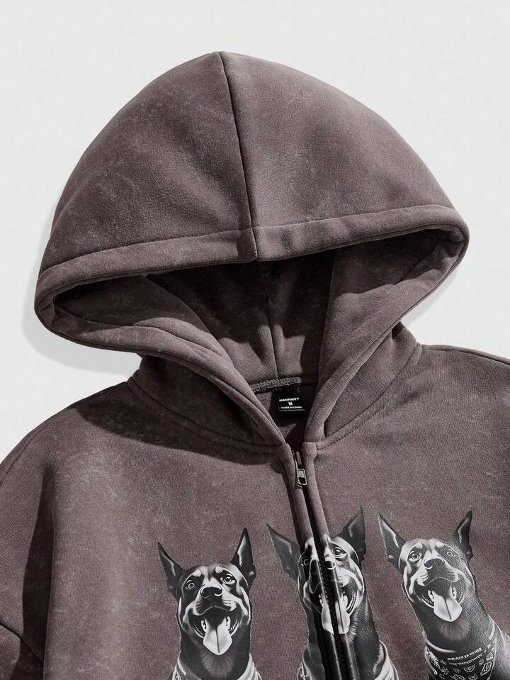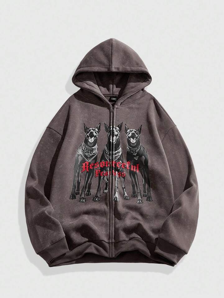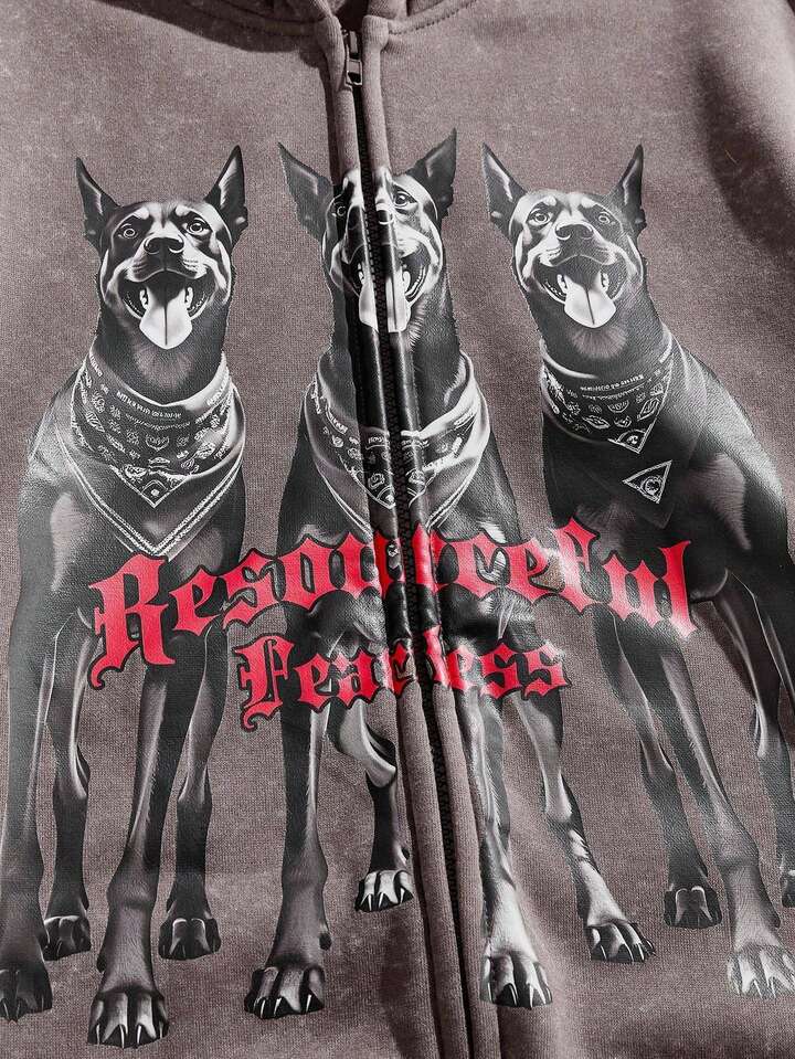 Street Life Felpa con cappuccio e chiusura lampo da uomo con stampa di lettere e cani per autunno/inverno