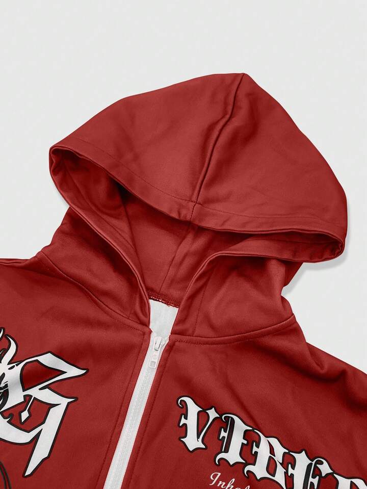 Street Life Felpa con cappuccio casual con chiusura lampo e stampa slogan, da uomo, per autunno/inverno