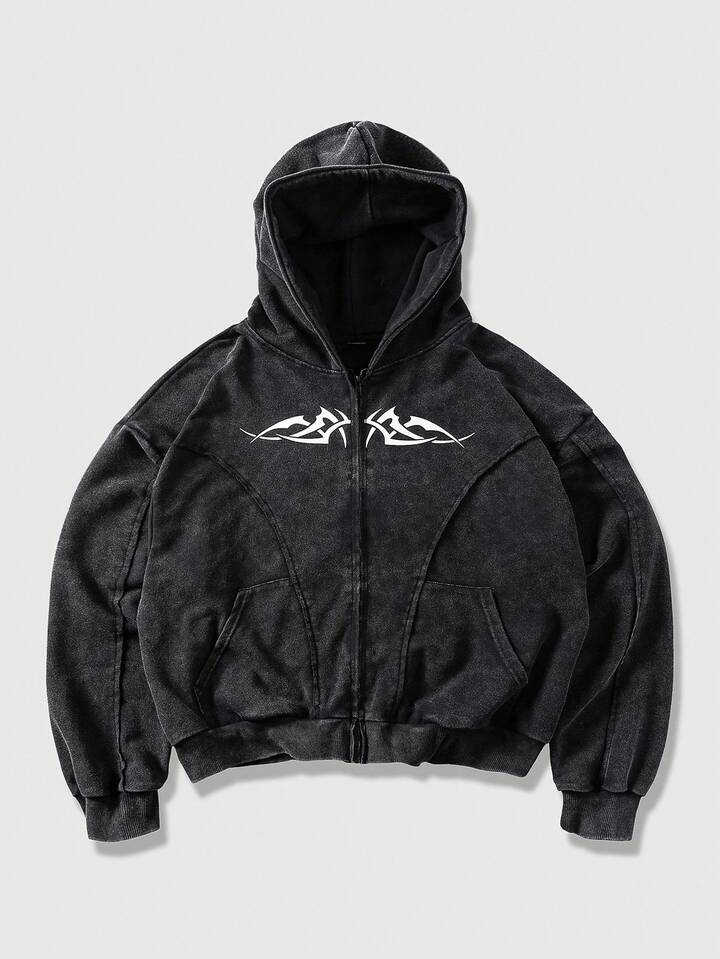 Street Life Felpa con cappuccio, tasche e stampa grafica, manica lunga, casual, da uomo