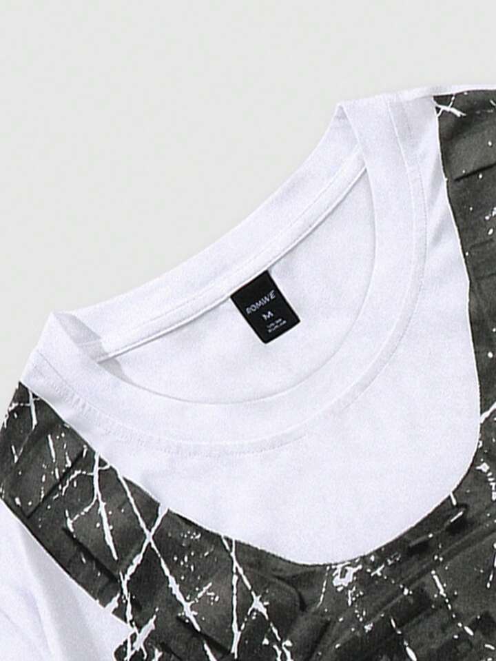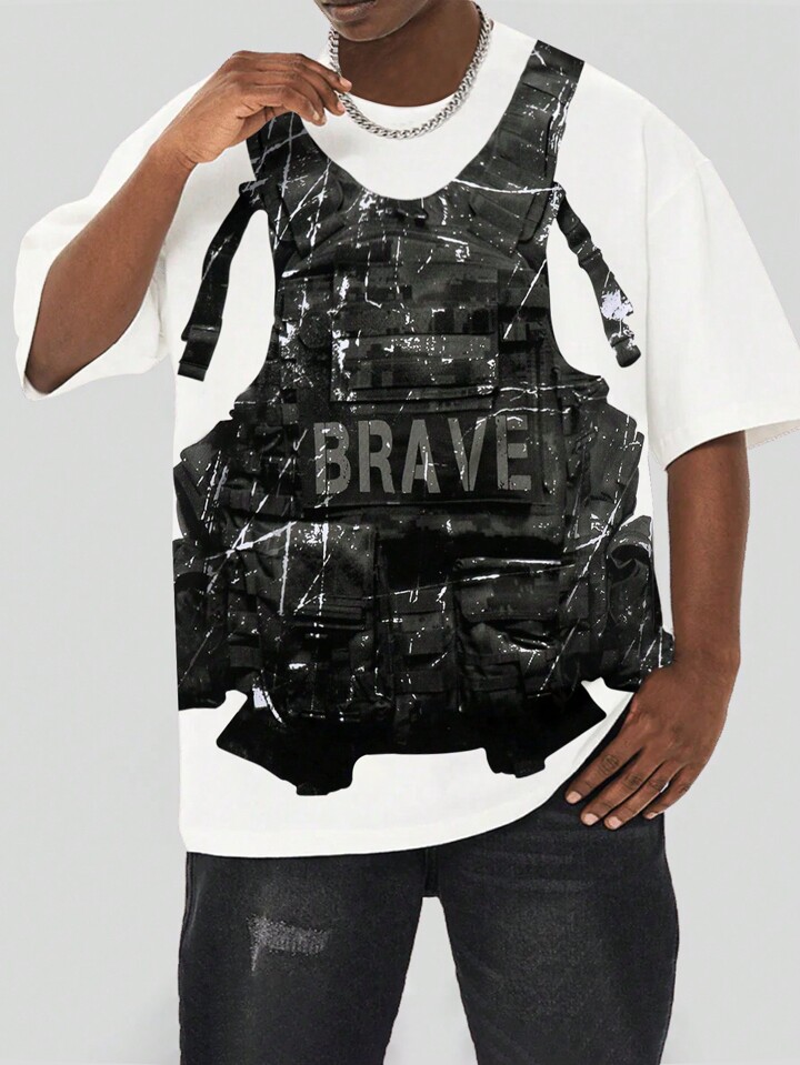 Street Life Maglietta A Maniche Corte Con Stampa Zaino Per Uomo, Adatta Per L'abbigliamento Casual Quotidiano In Primavera Ed Estate