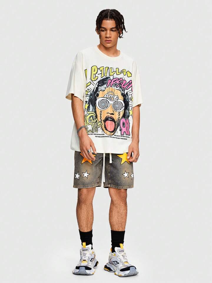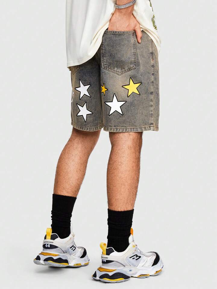 Street Life Pantaloni corti in denim lavati strappati oversize da uomo, vestibilità comoda e larga