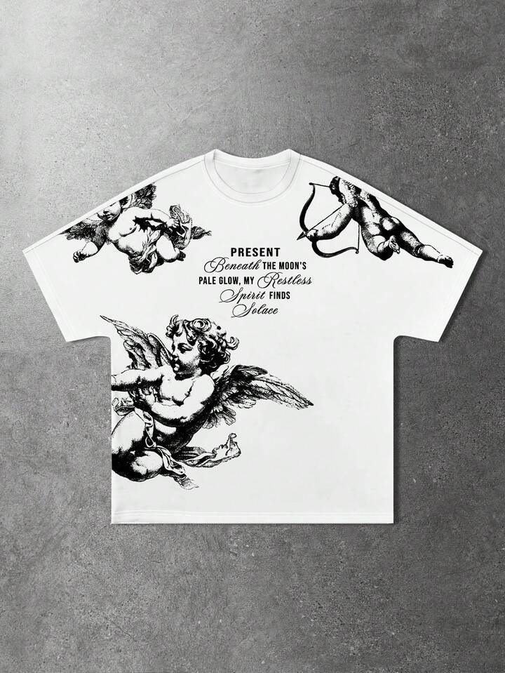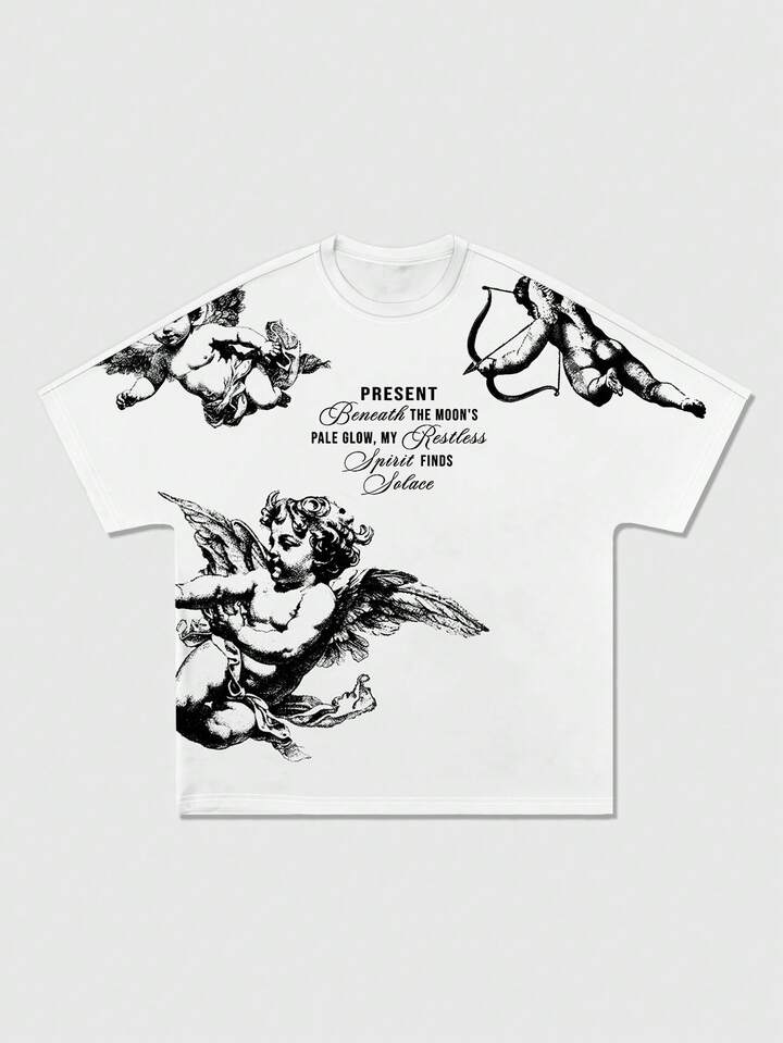 Street Life Maglietta a maniche corte con stampa e maniche a pipistrello, adatta per uso quotidiano in primavera/estate