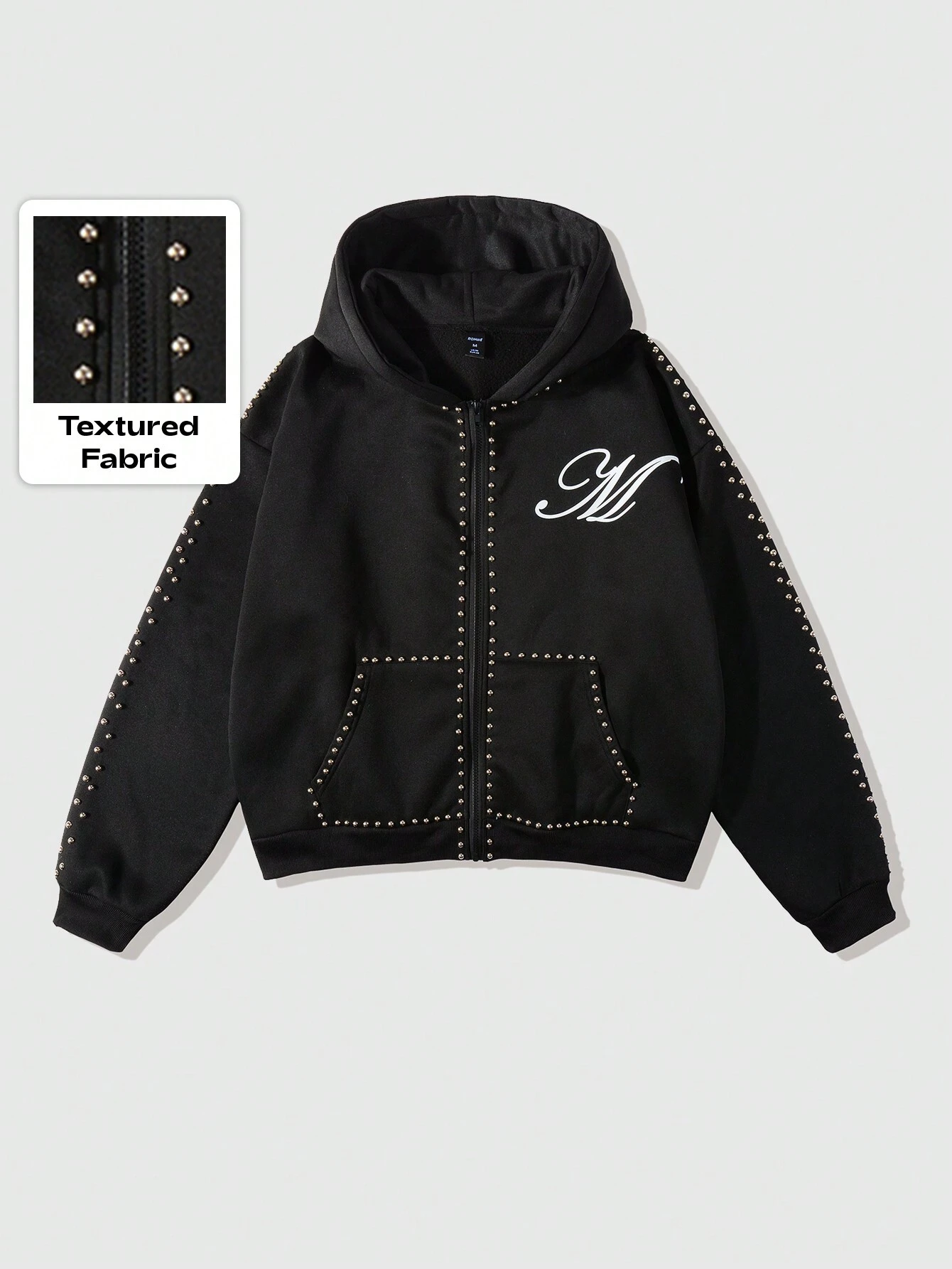 Street Life Felpa con cappuccio cropped e ampia decorata con perline, stile da strada, per uomo