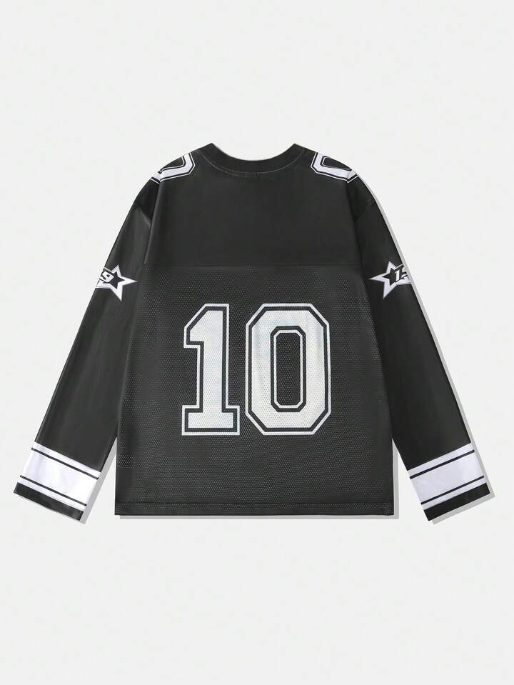 Street Life Maglietta sportiva a maniche lunghe da uomo, in in rete traspirante con stampa grafica numero 10, streetwear