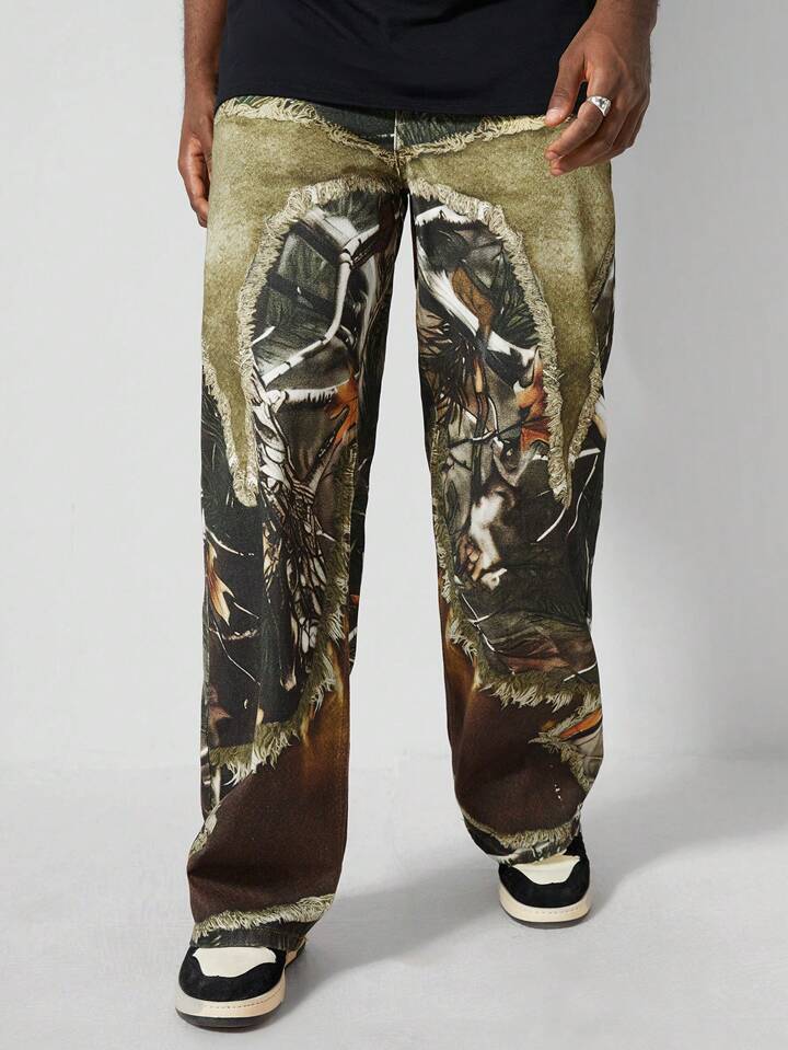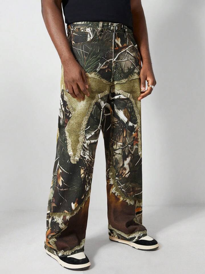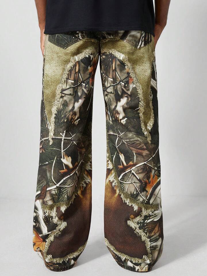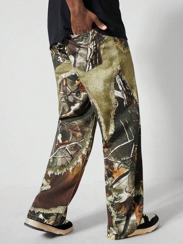 Street Life Jeans larghi e comodi da uomo con stampa mimetica a ramo secco