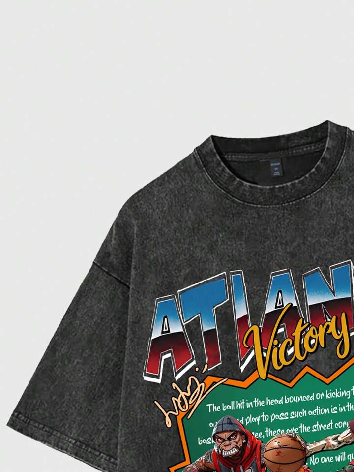 Street Life Maglietta a manica corta in cotone lavato e sbriciolato con stampa divertente a pallacanestro da uomo, stile vintage urbano, estate
