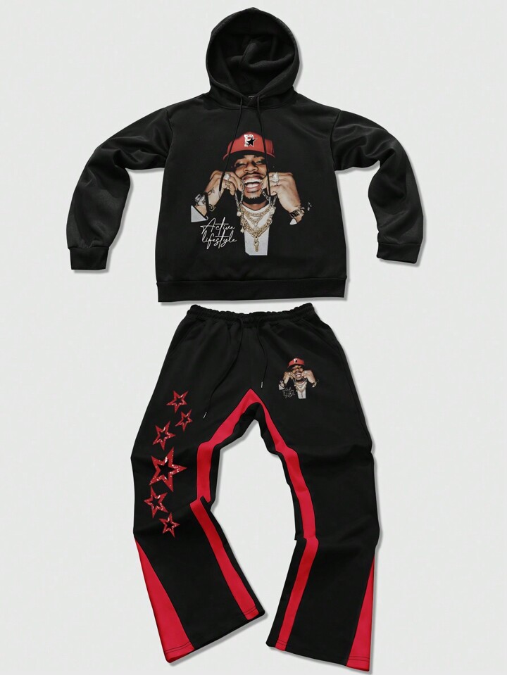 Street Life Set casual di felpa con cappuccio e pantaloni della tuta con stampa a cartoni animati per uomo, adatto per autunno/inverno
