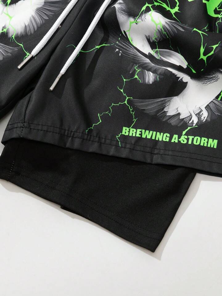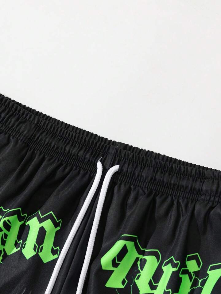 Street Life Shorts casual da uomo 2 in 1 con vita regolabile e stampa a lettere, adatti per la scuola