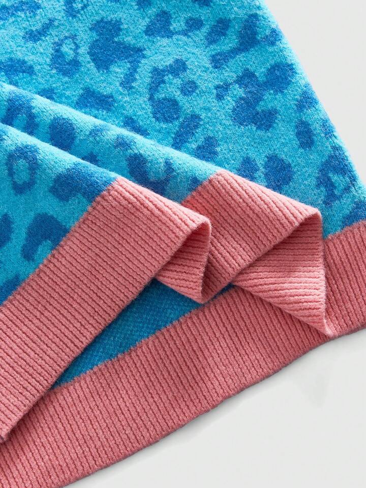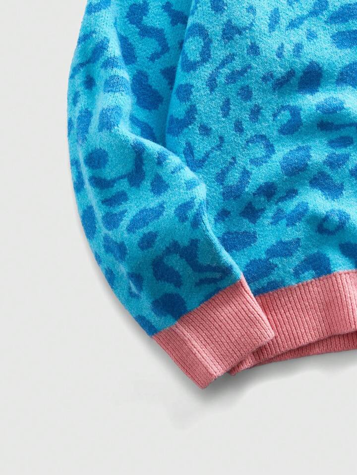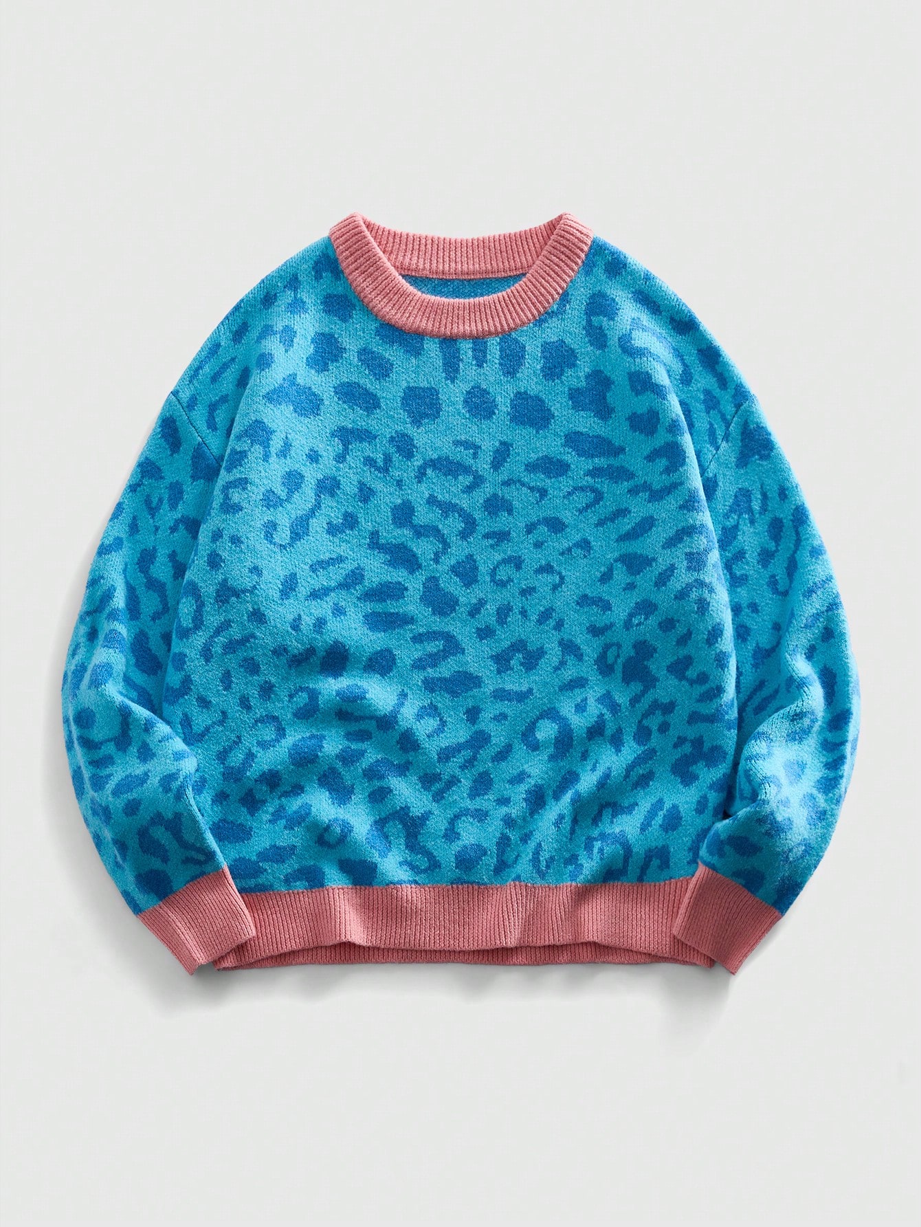 Street Life Maglione casual da uomo in maglia jacquard con stampa leopardata e bordi a contrasto, adatto per autunno/inverno
